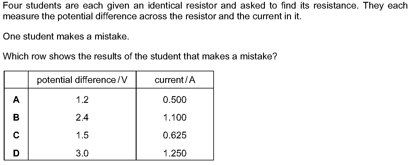 Fig. 8.1 shows two resistors forming part of a circuit.(a) (i) Complete the following sentence about the two resistors connected between A and D.The t...