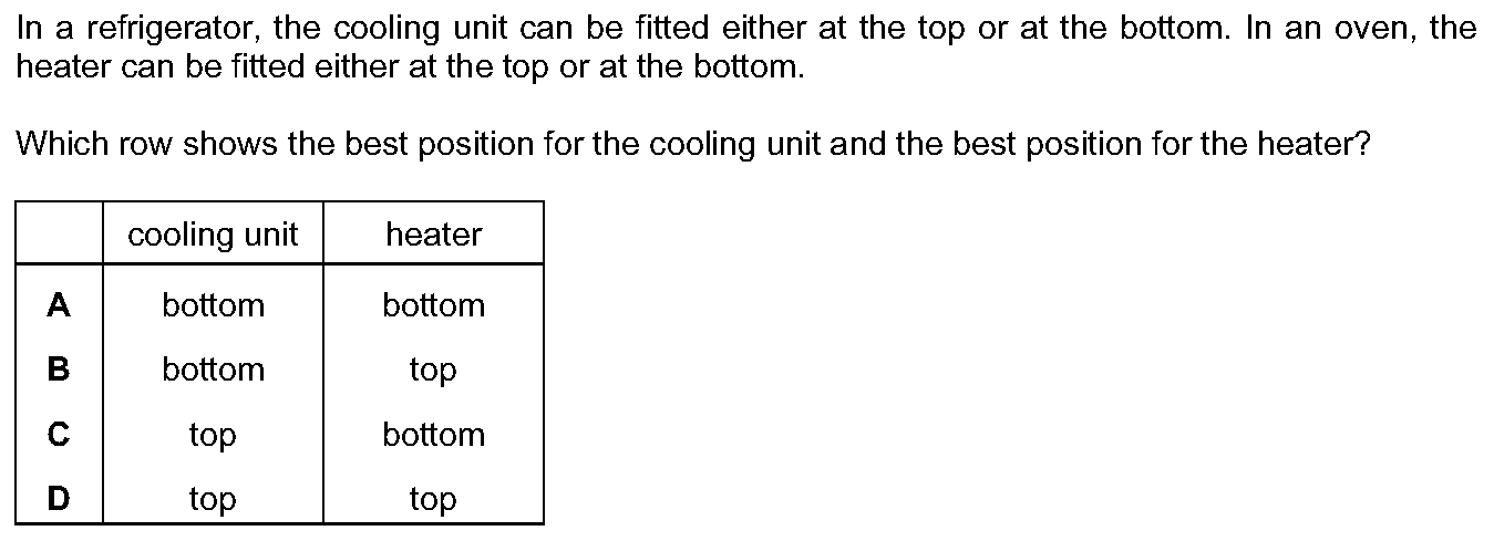 Energy may be transferred from one place to another by means of conduction, convection or radiation. Which process is involved when energy is transfer...