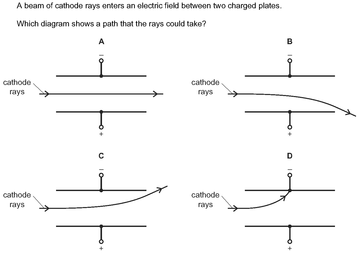 Fig. 12.1 shows parts of a tube in which cathode rays are produced.(a) What occupies the remaining space within the tube? Tick one box.air [ ]hydrogen...
