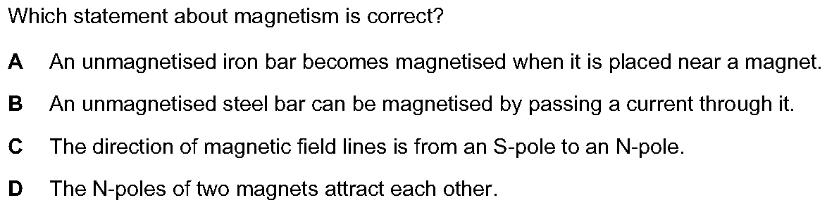 The pivoted steel arrow from a small compass has become demagnetised. The coil shown in Fig. 7.1 is to be used to magnetise it again. (a) Describe ca...