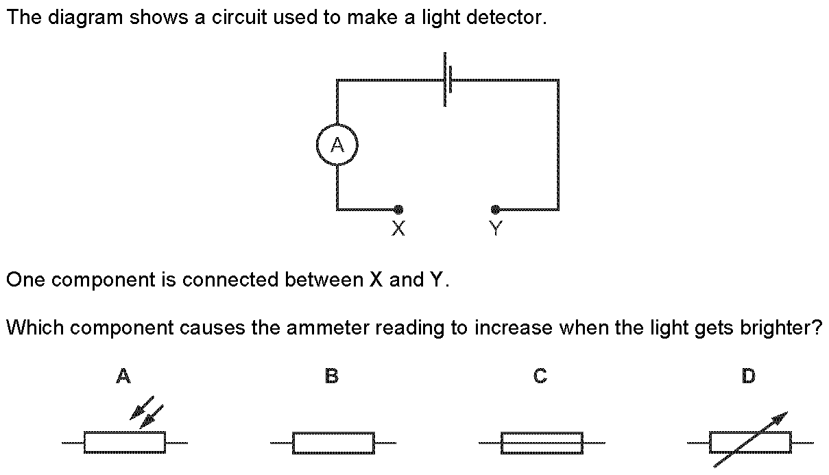 A camera has a circuit containing a light-dependent resistor (LDR). Fig. 10.1 shows part of this circuit. (a) Describe what happens to the resistance ...