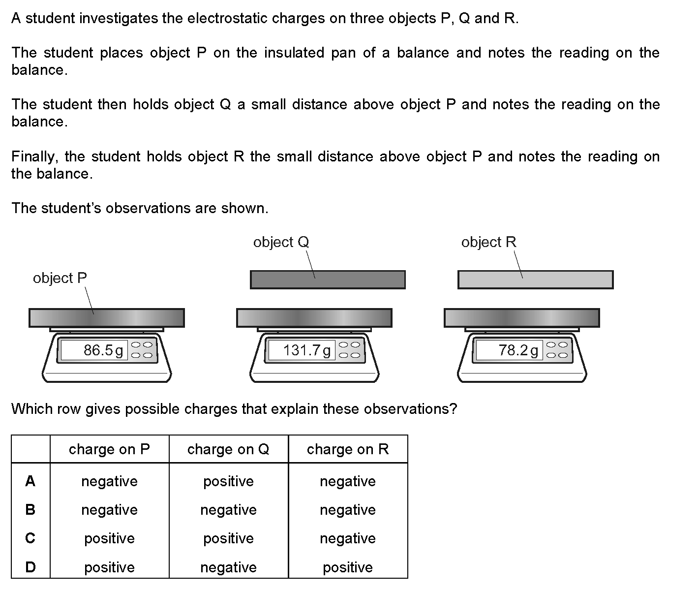 (a) Two light, identical spheres, A and B, are suspended alongside each other on thin nylon threads, as shown in Fig. 7.1.[Image_1: Diagram of two sph...