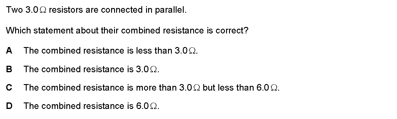 Fig. 8.1 shows two resistors forming part of a circuit.(a) (i) Complete the following sentence about the two resistors connected between A and D.The t...