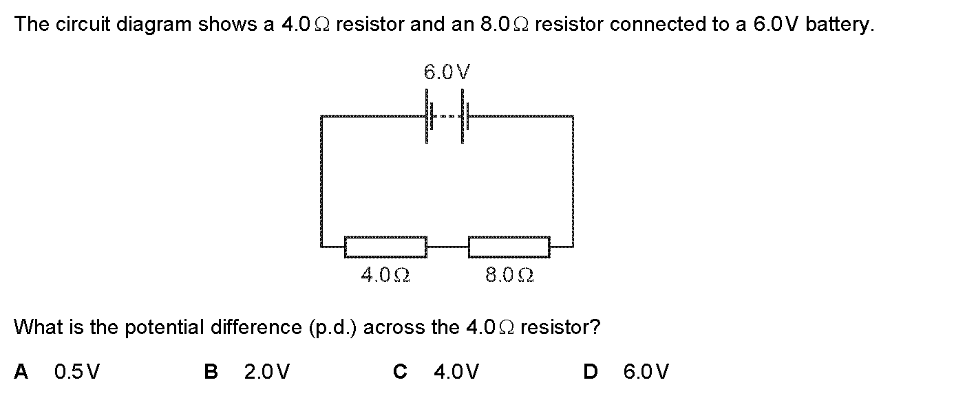 Fig. 8.1 shows two resistors forming part of a circuit.(a) (i) Complete the following sentence about the two resistors connected between A and D.The t...