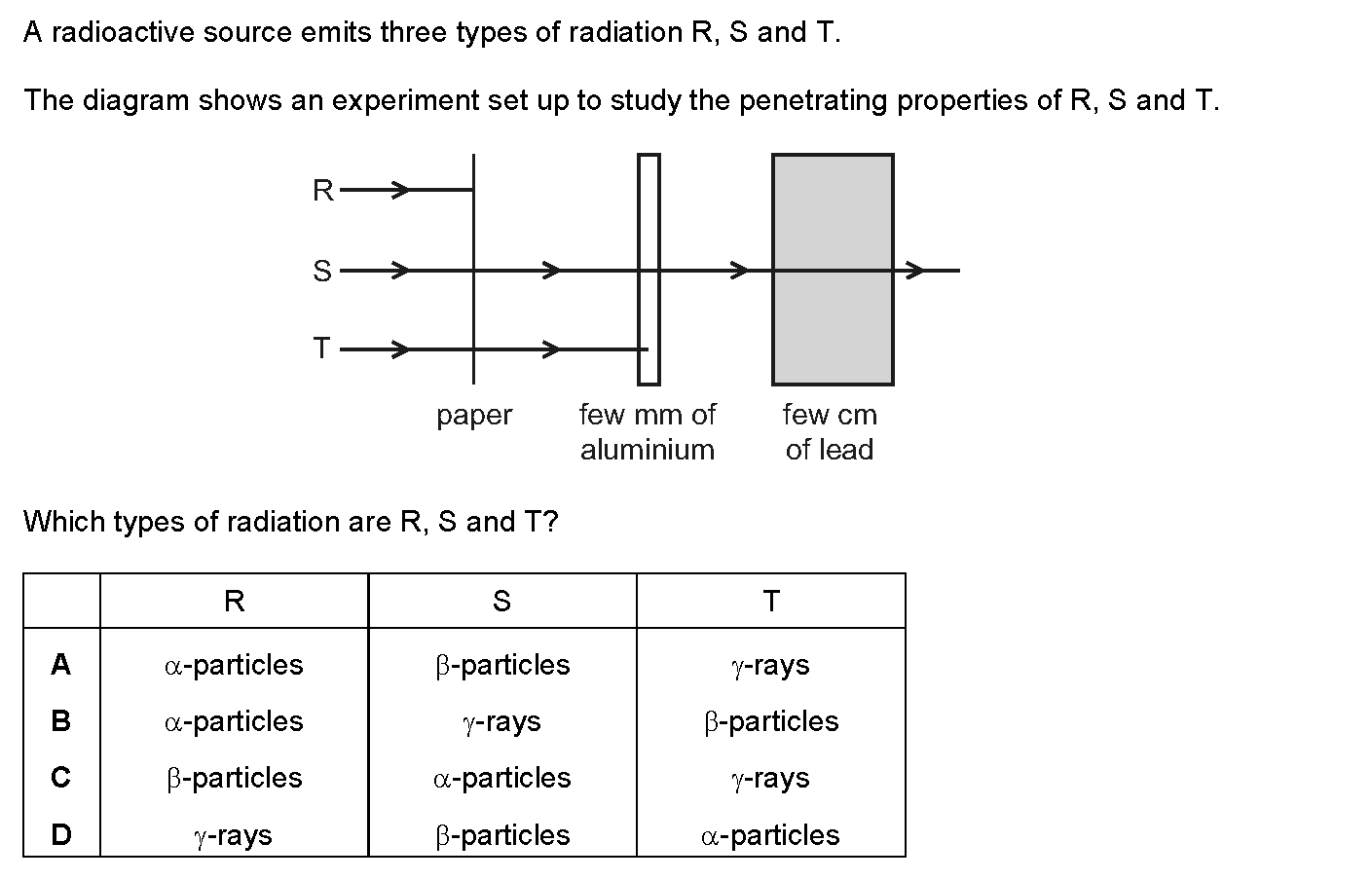 (a) A particular radioactive source is known to emit either $\alpha$-particles or $\beta$-particles.Describe an experiment involving a solid absorber ...