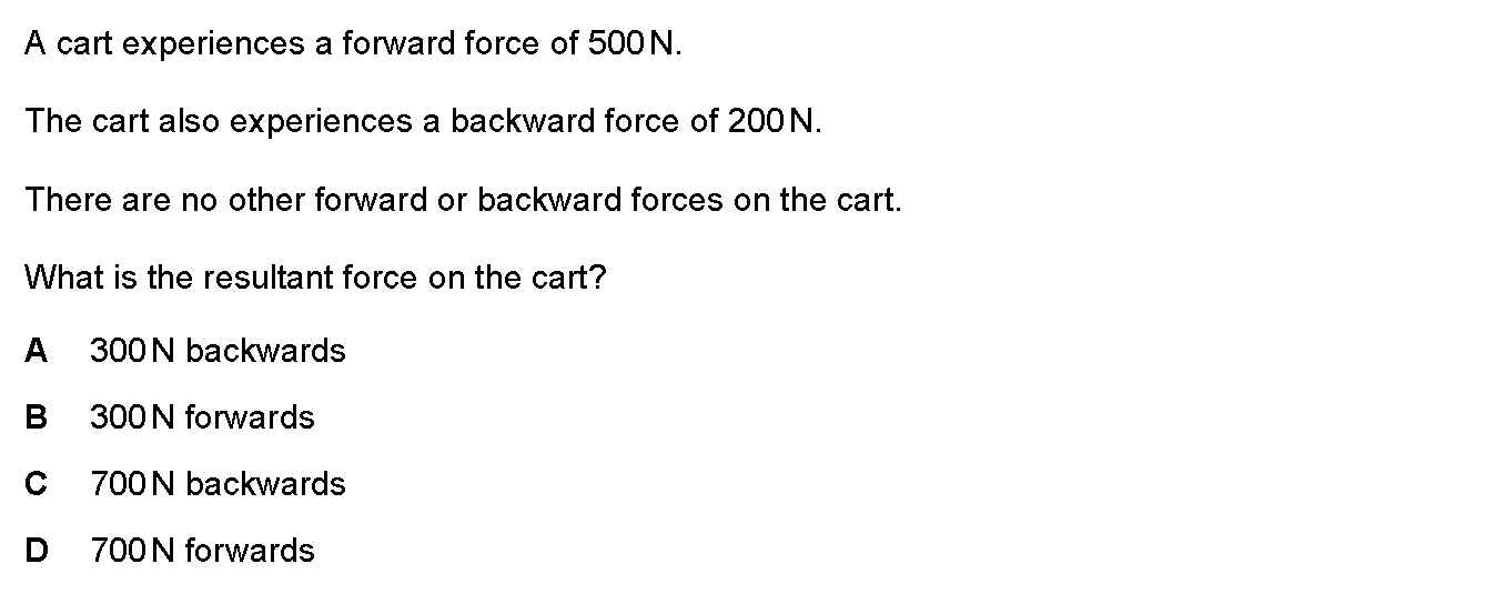 The car in Fig. 3.1 is on a level road.(a) Calculate the magnitude of the resultant force on the car.resultant force = ..................................