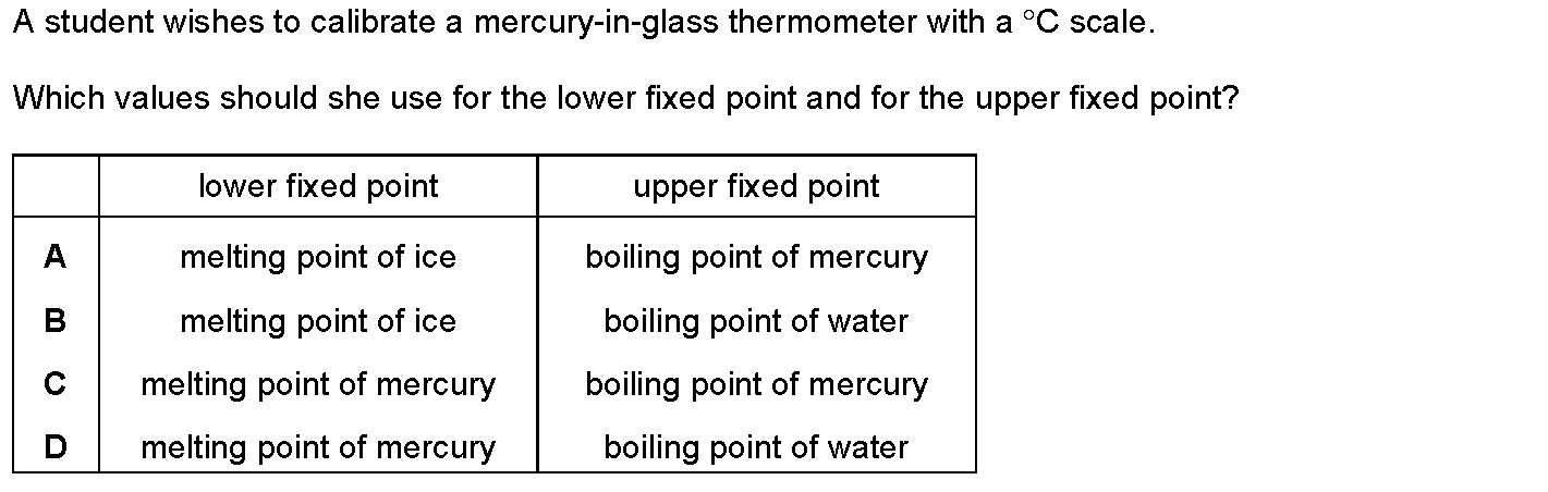 The liquid-in-glass thermometer in Fig. 6.1 has a scale from -10°C to 110°C.(a) Two of the temperatures marked on the thermometer are known as fixed...