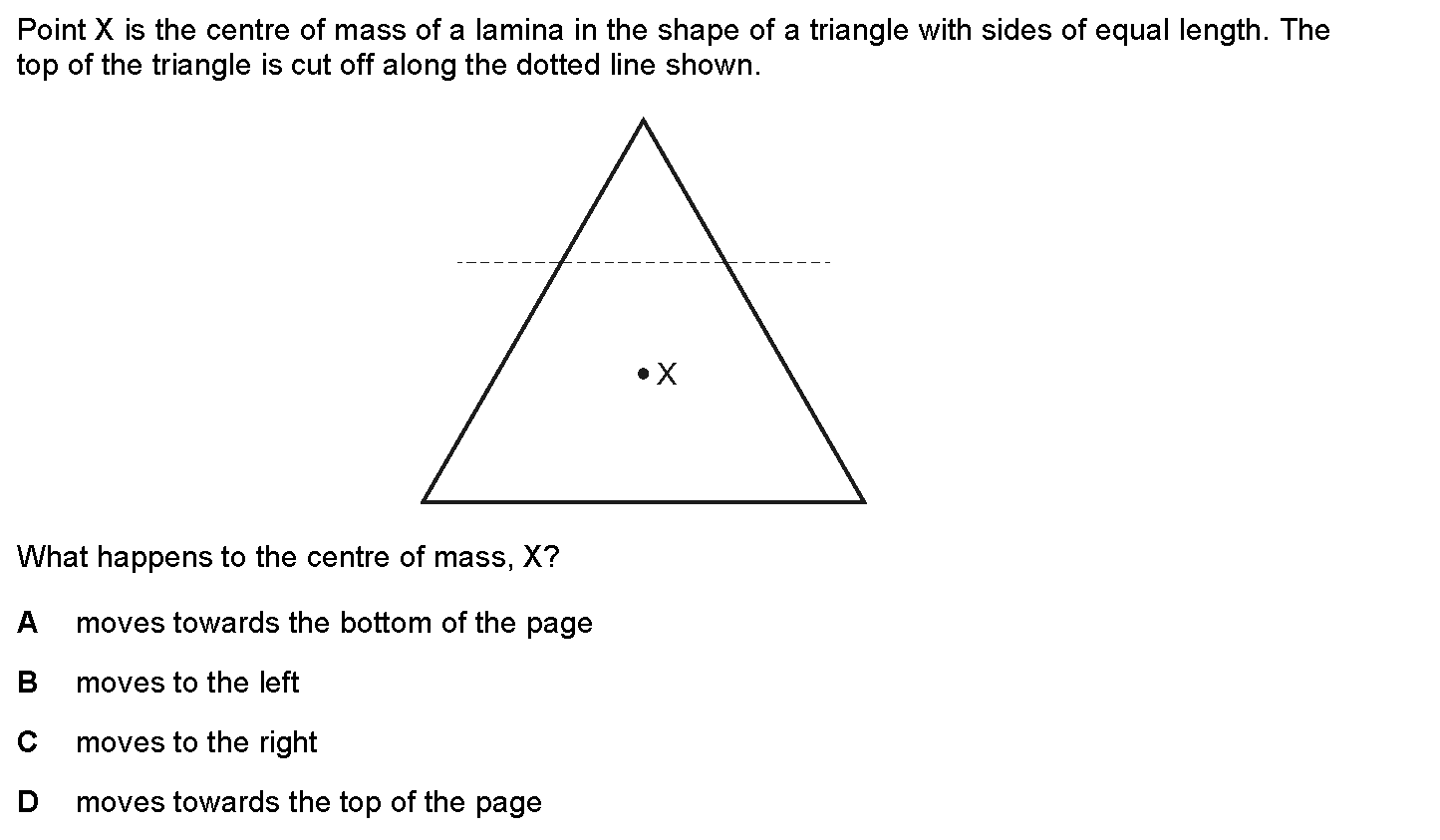 (a) In a laboratory experiment to find the centre of mass of a triangular piece of card, the card is suspended first from point A and then from point ...