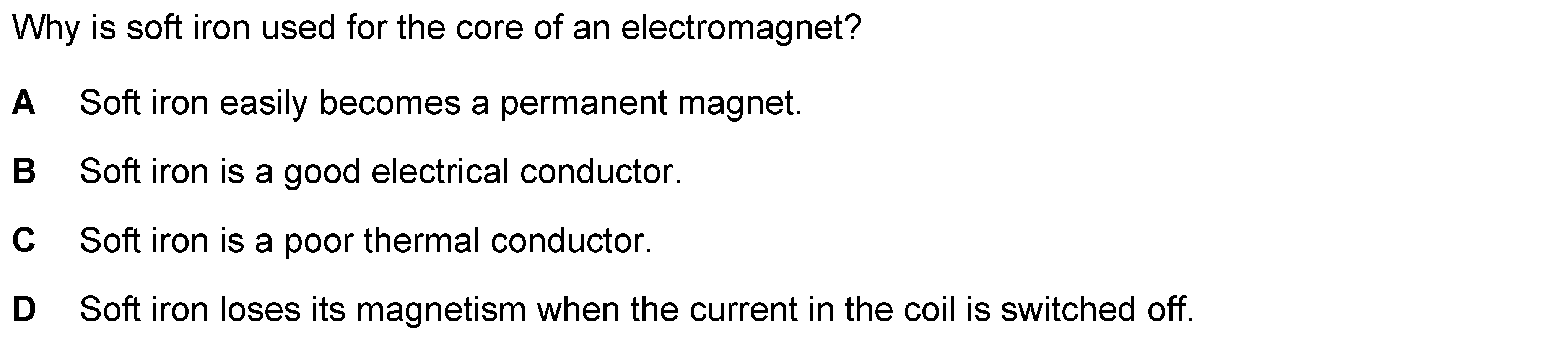 The pivoted steel arrow from a small compass has become demagnetised. The coil shown in Fig. 7.1 is to be used to magnetise it again. (a) Describe ca...