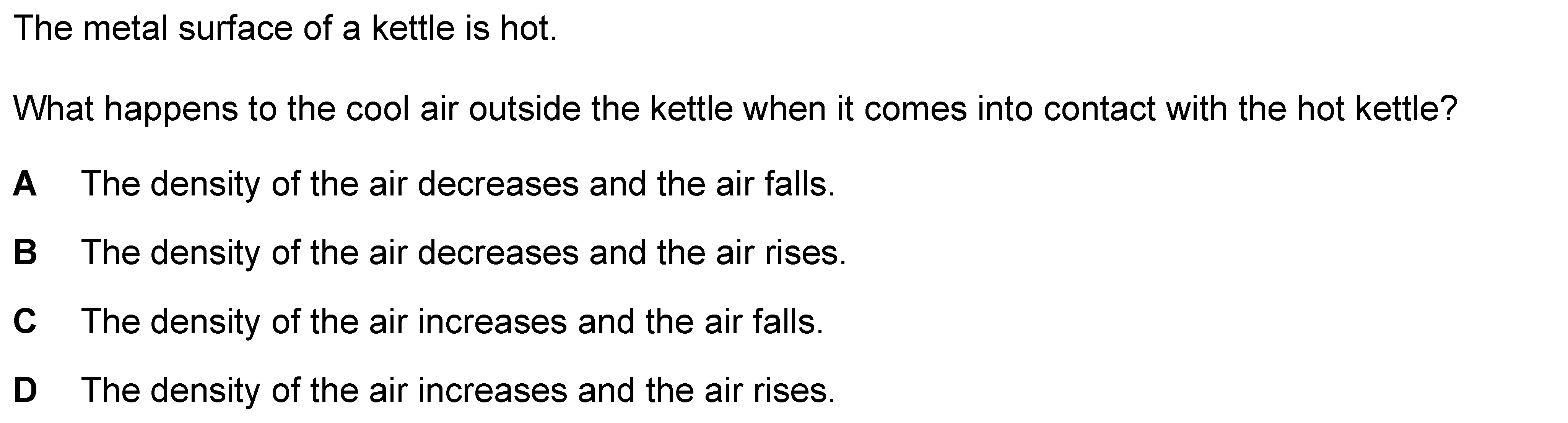 Energy may be transferred from one place to another by means of conduction, convection or radiation. Which process is involved when energy is transfer...