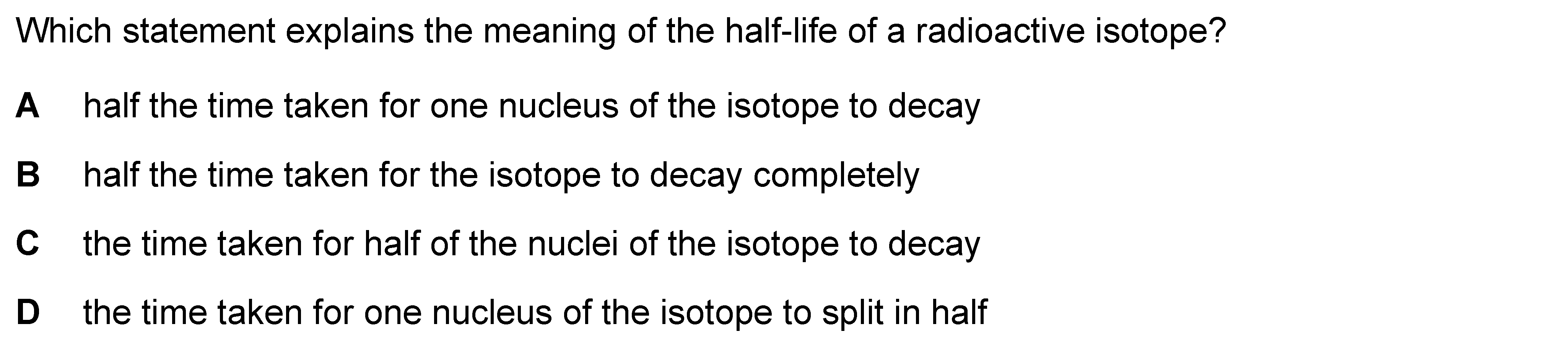 (a) Complete the following definition of radioactive half-life.The half-life of a radioactive substance is the time taken for ...........................
