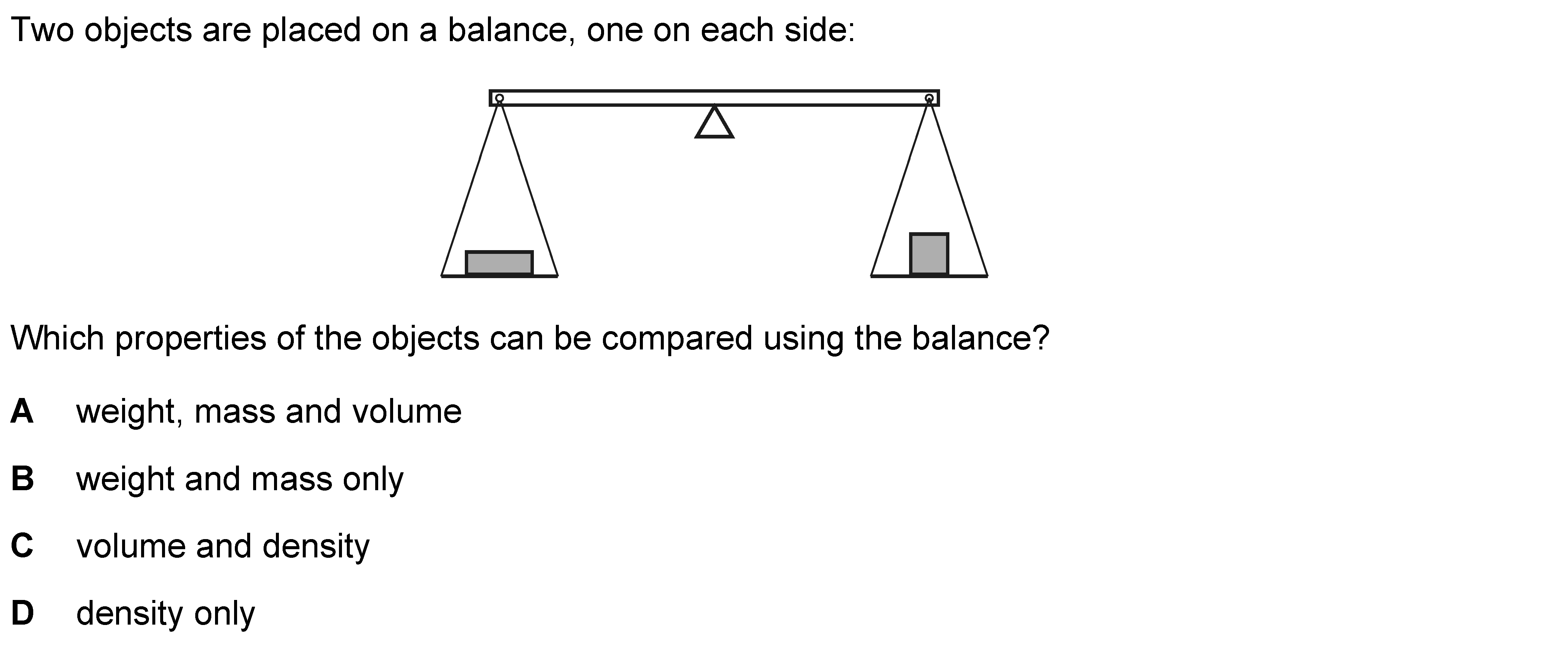 The volume of a stone is to be found using the equipment illustrated in Fig. 1.1. [Image_1: Fig. 1.1 showing a stone, measuring cylinder, and water] T...