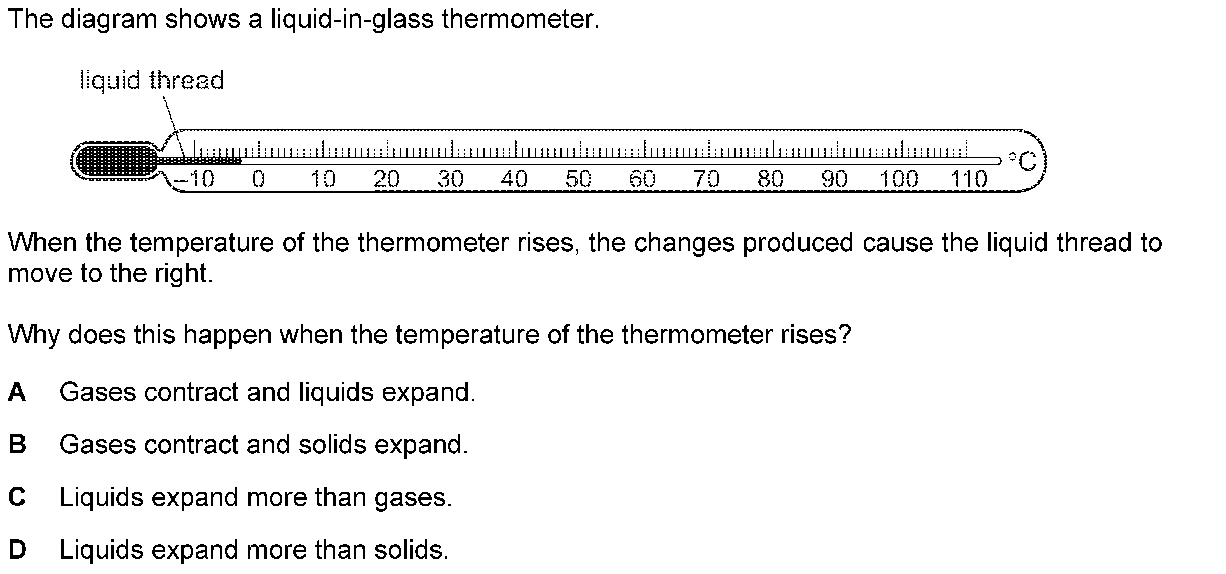 (a) In terms of molecules, explain why solids expand when they are heated................................................................................