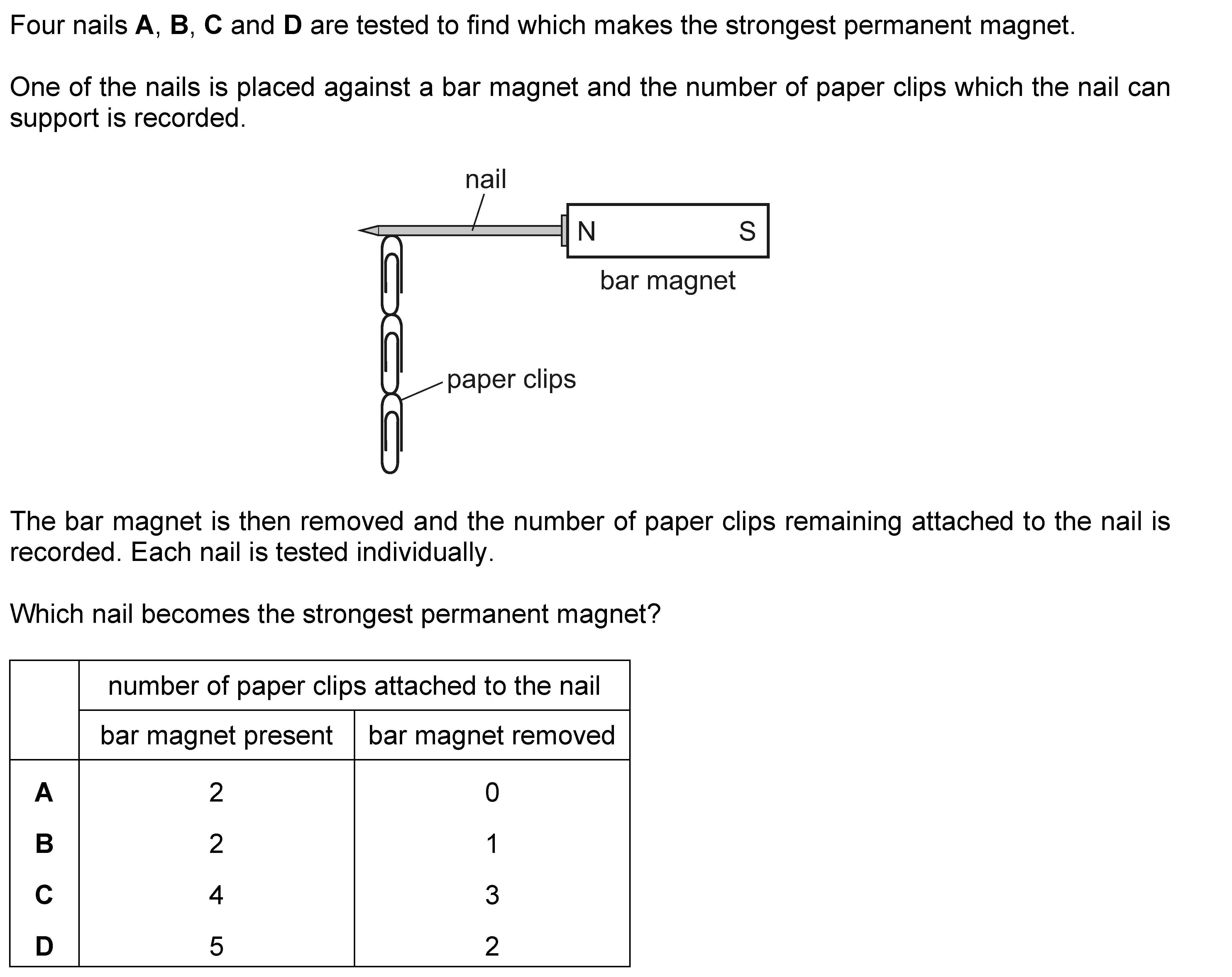 The pivoted steel arrow from a small compass has become demagnetised. The coil shown in Fig. 7.1 is to be used to magnetise it again. (a) Describe ca...