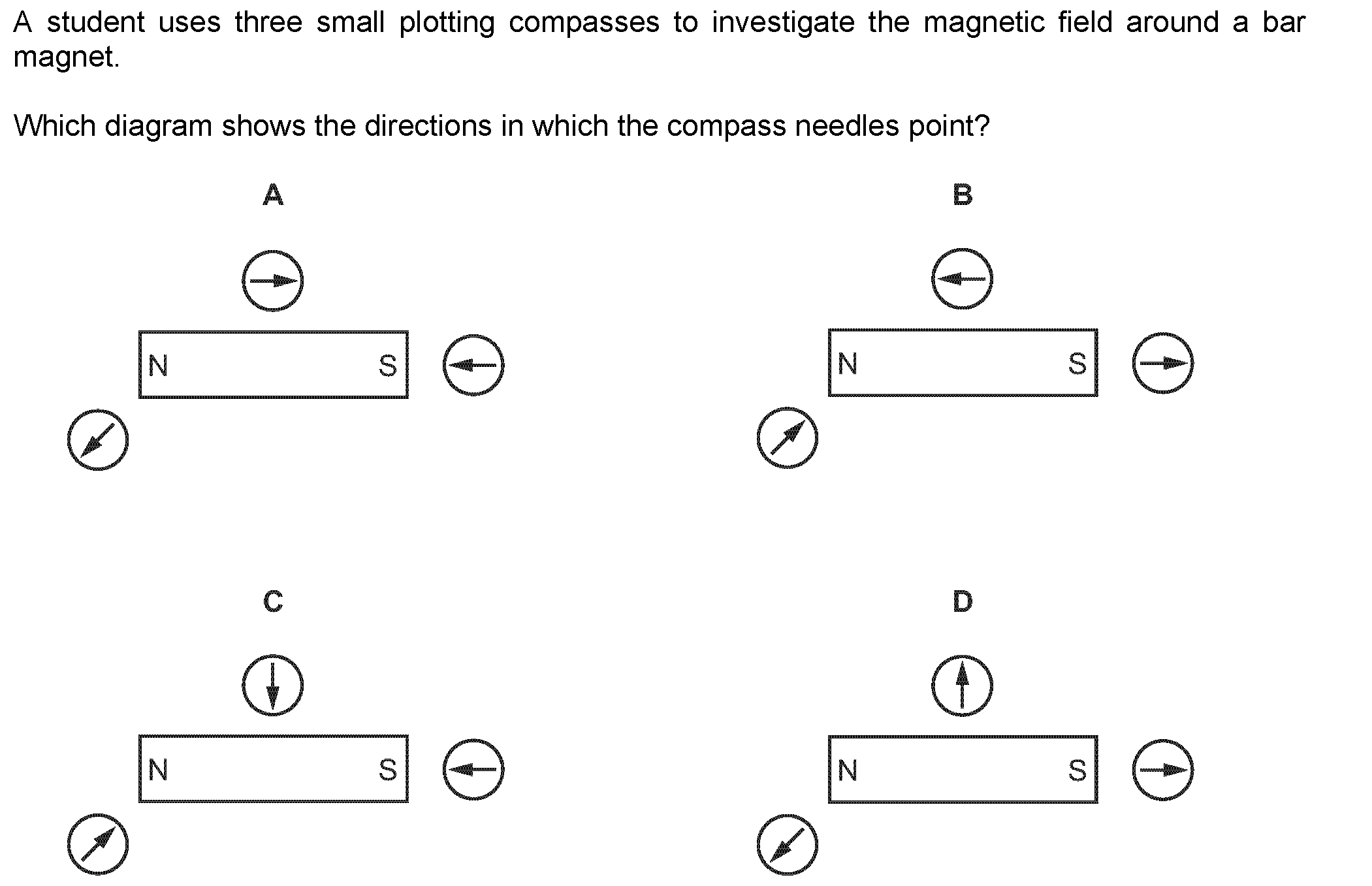 The pivoted steel arrow from a small compass has become demagnetised. The coil shown in Fig. 7.1 is to be used to magnetise it again. (a) Describe ca...