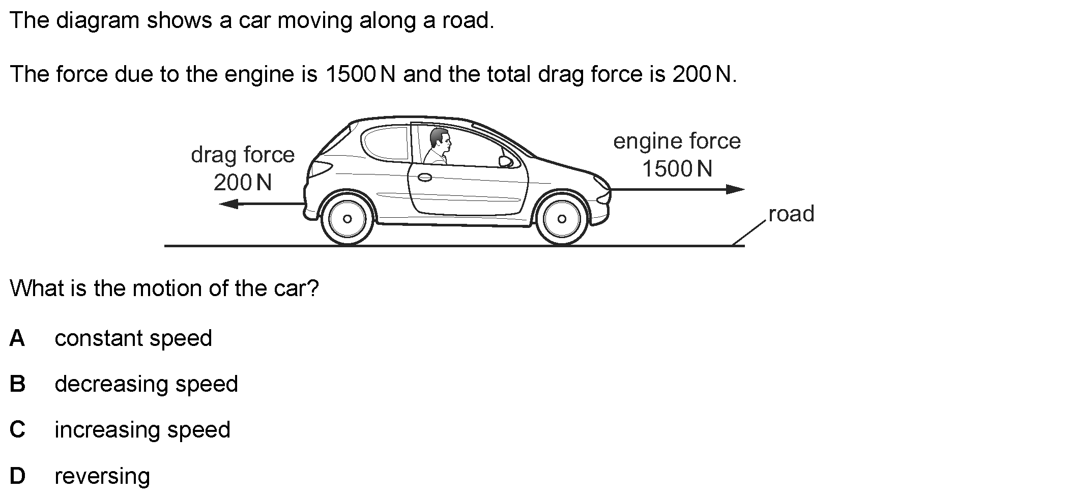The car in Fig. 3.1 is on a level road.(a) Calculate the magnitude of the resultant force on the car.resultant force = ..................................