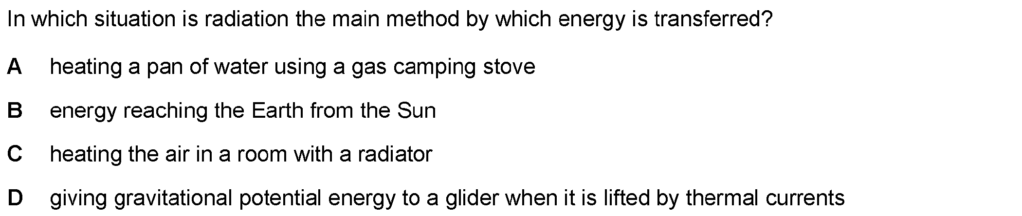 Energy may be transferred from one place to another by means of conduction, convection or radiation. Which process is involved when energy is transfer...