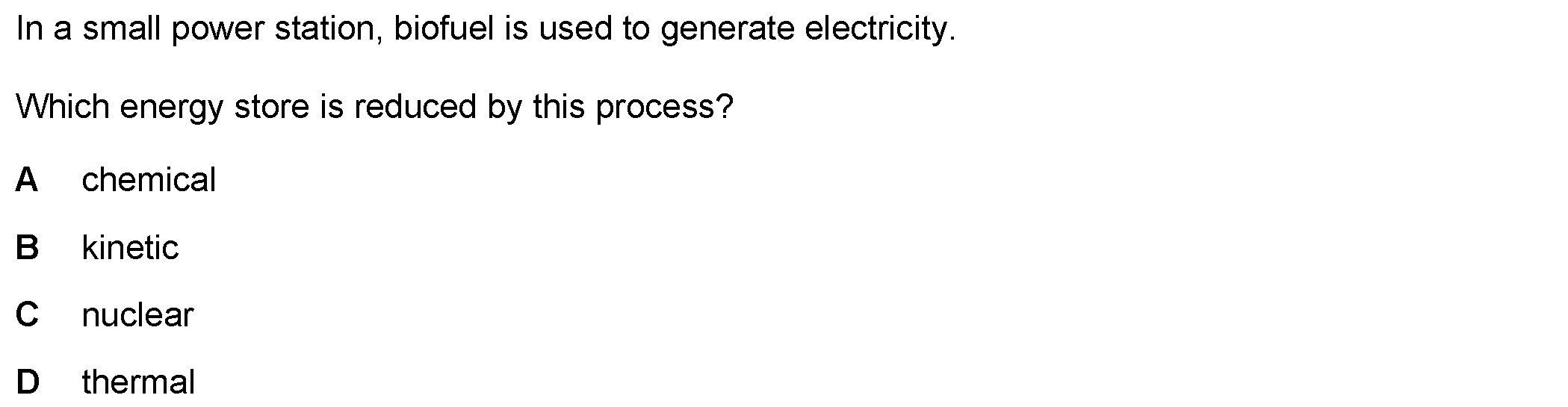 The diagram shows the energy stores for a mobile (cell) phone and how the energy is transferred between stores. What describes how the chemical ene...