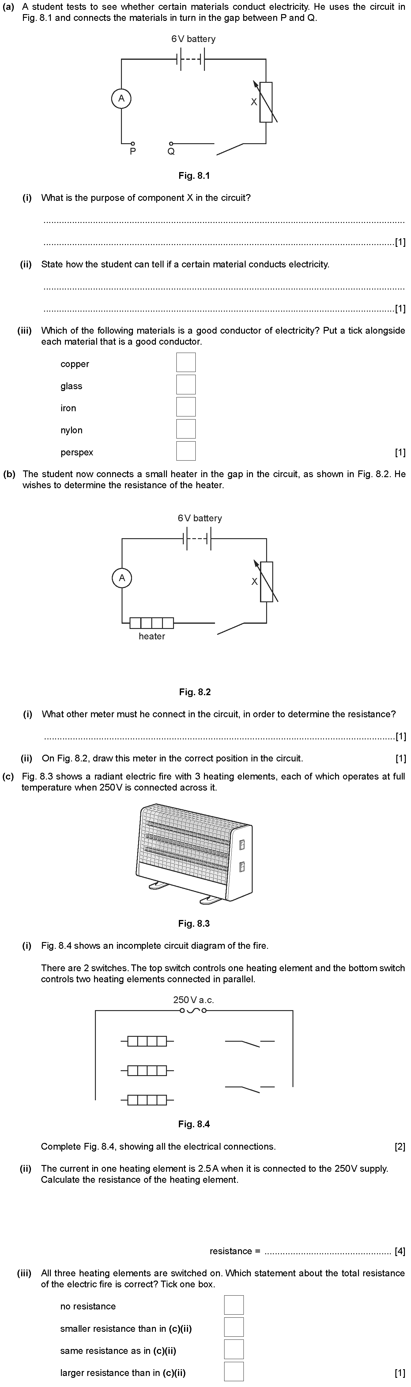 Fig. 8.1 shows a cell.(a) What does the 1.5V indicate about the cell?.............................................................[2](b) Three cells i...