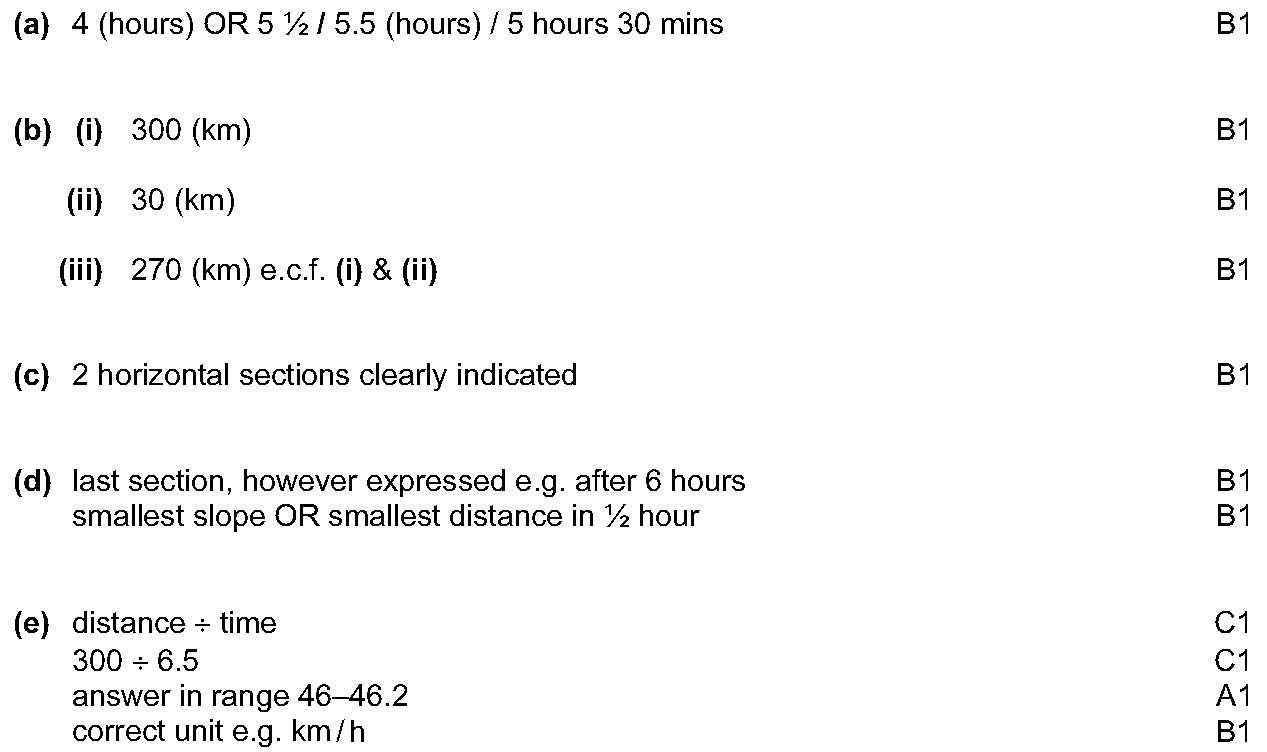 A car travels at various speeds during a short journey. The table shows the distances travelled and the times taken during each of four stages P, Q, R...