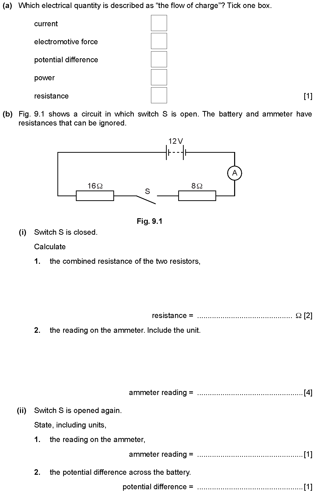 Fig. 9.1 shows a simple circuit.(a) What is the value of(i) the e.m.f. of the battery, ..................................................................