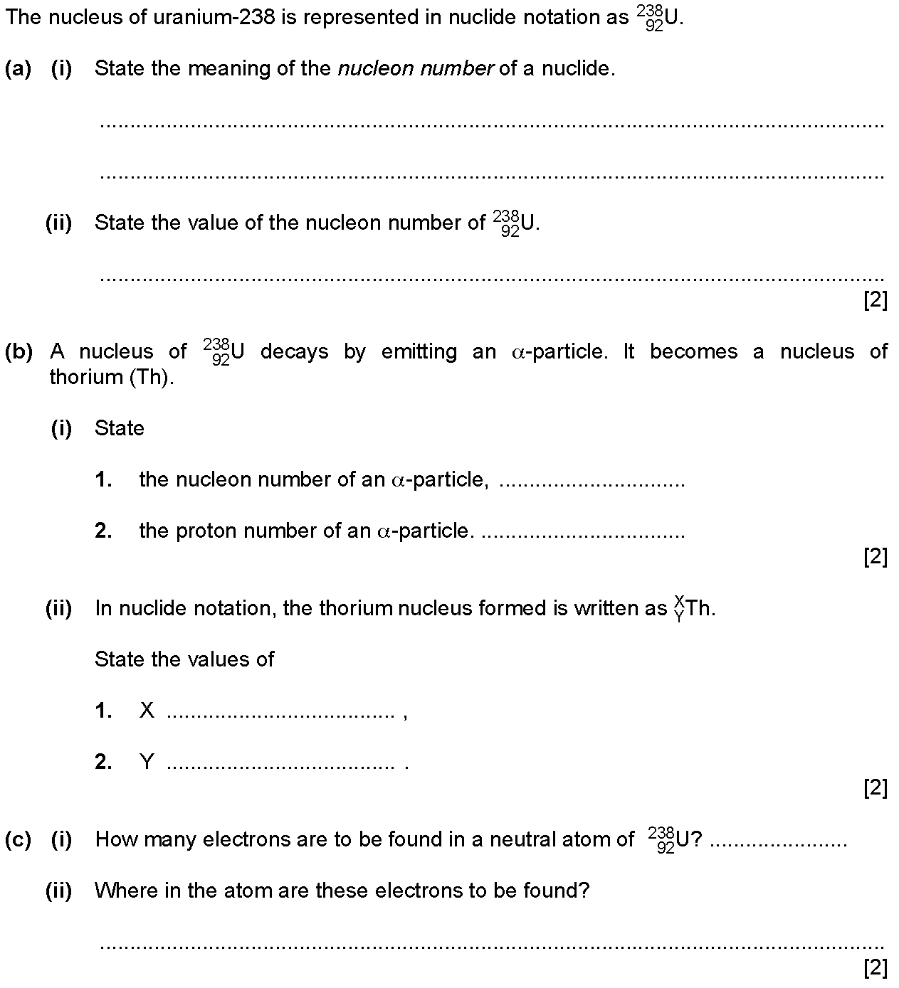 (a) The symbol for an $\alpha$-particle is either $^4_2\alpha$ or $^4_2\text{He}$.(i) What does the 4 indicate about an $\alpha$-particle?...............