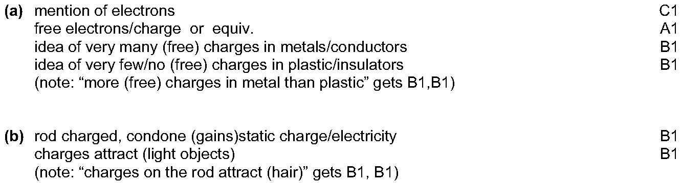 (a) Complete the following sentences.(i) An electric current exists in a wire when ...................................................... are made to ...