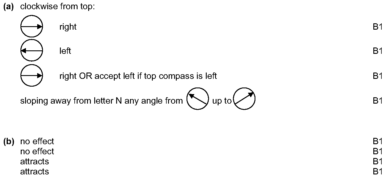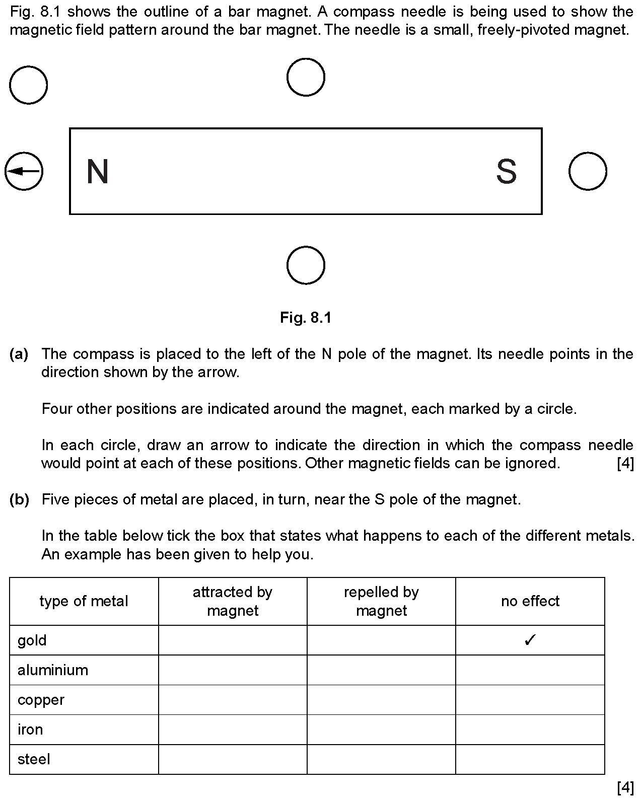 Fig. 7.1 shows a compass needle that has come to rest in the Earth's magnetic field.(a) On Fig. 7.1, draw an arrow pointing towards the north pole of ...