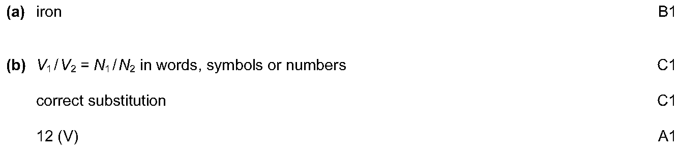 Fig. 10.1 is a diagram of a transformer.[Image_1: Fig. 10.1 diagram](a) (i) On Fig. 10.1, clearly label the core of the transformer. [1](ii) Name a su...