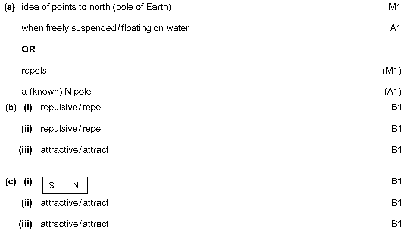 Fig. 7.1 shows a compass needle that has come to rest in the Earth's magnetic field.(a) On Fig. 7.1, draw an arrow pointing towards the north pole of ...