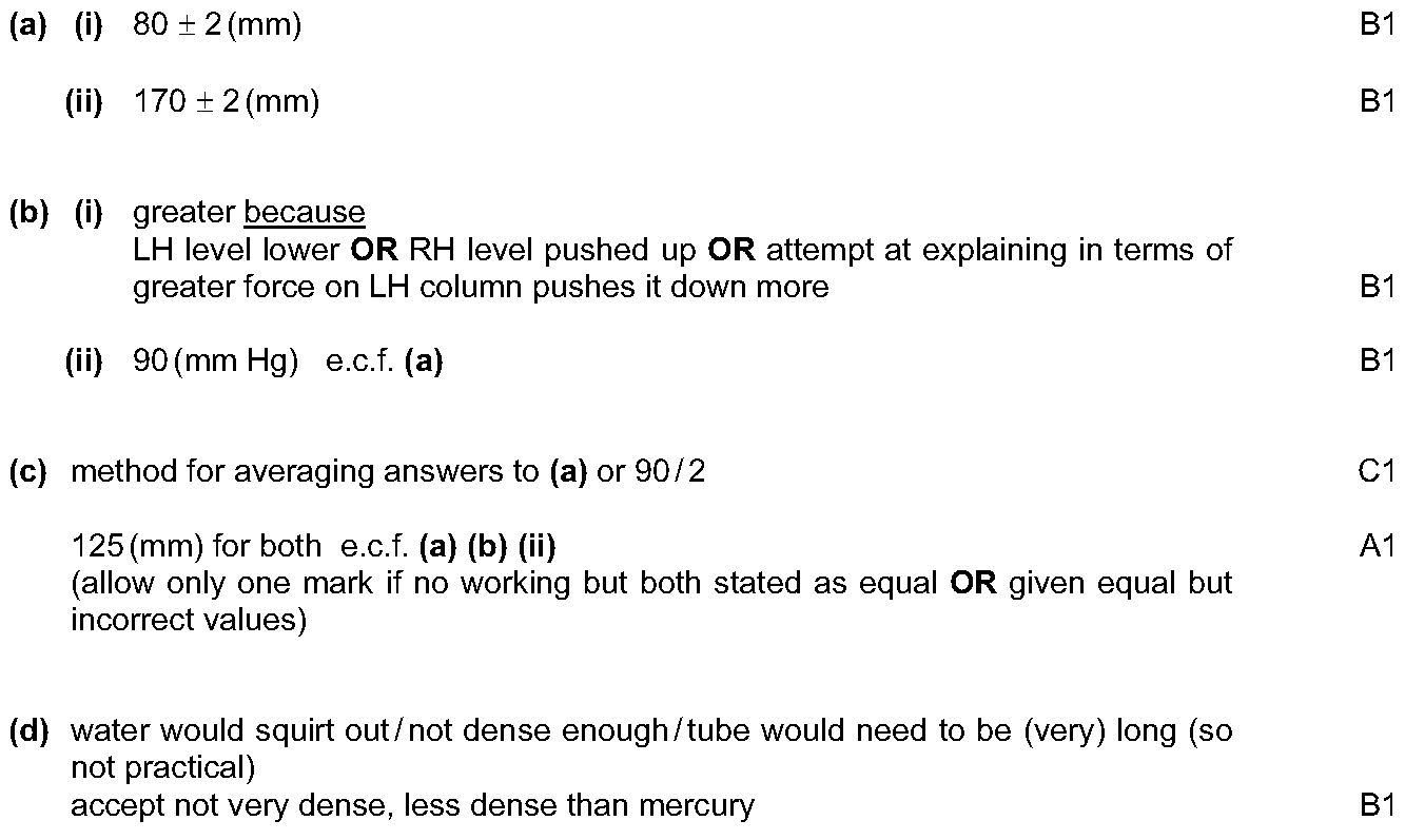 (a) State whether the pressure of the gas in the container is greater than, the same as, or less than the pressure of the atmosphere.....................