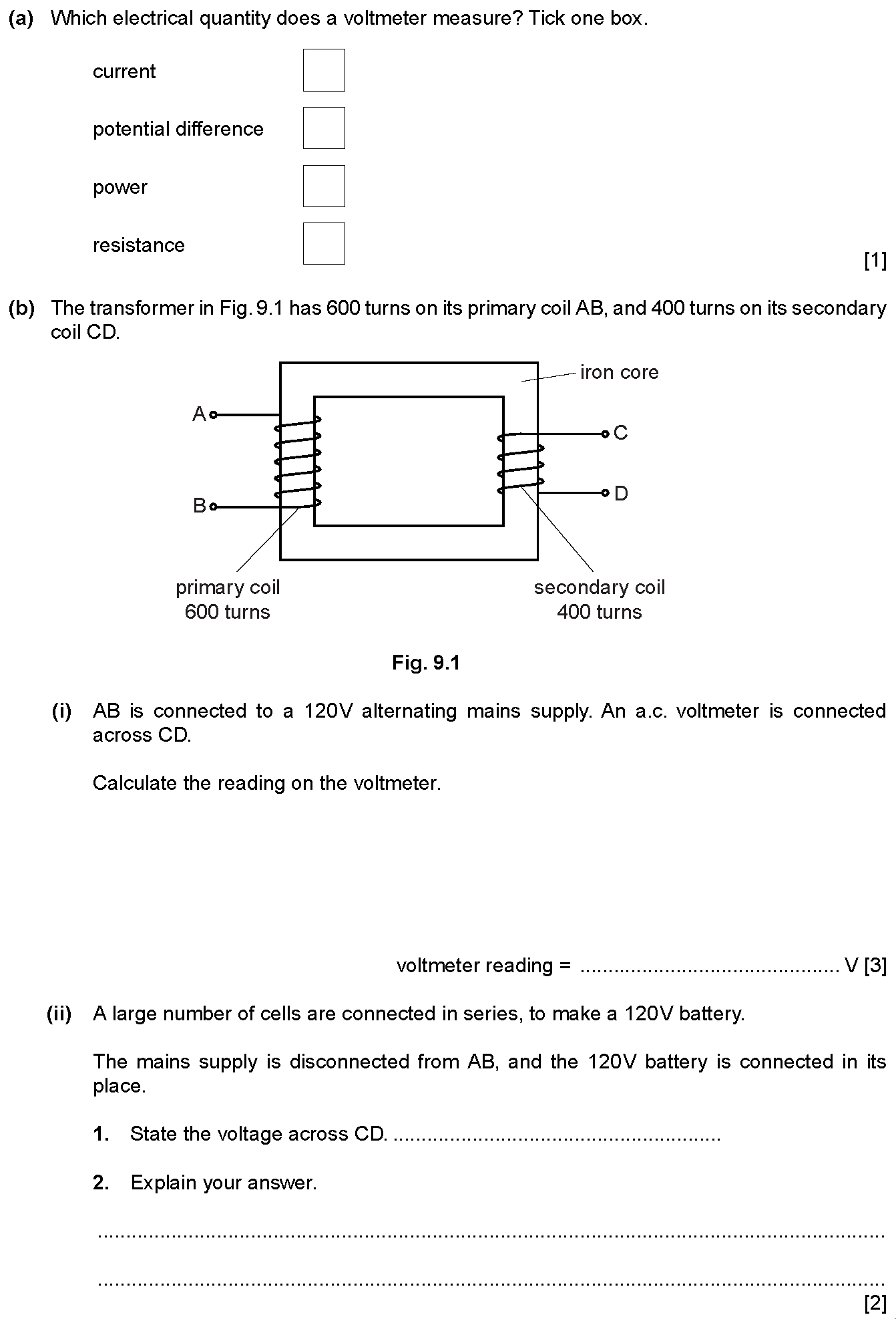 Q9: Cambridge IGCSE Physics - 0625 - Core Paper 3 2014 Winter Zone 2