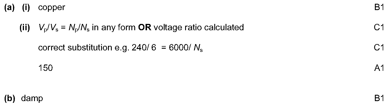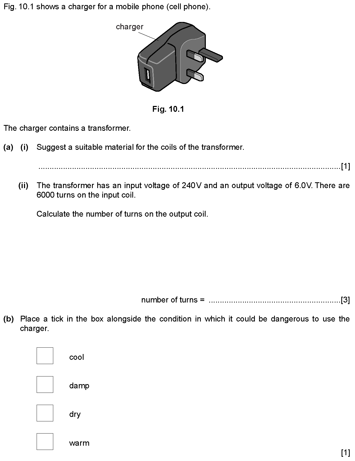 Fig. 10.1 is a diagram of a transformer.[Image_1: Fig. 10.1 diagram](a) (i) On Fig. 10.1, clearly label the core of the transformer. [1](ii) Name a su...