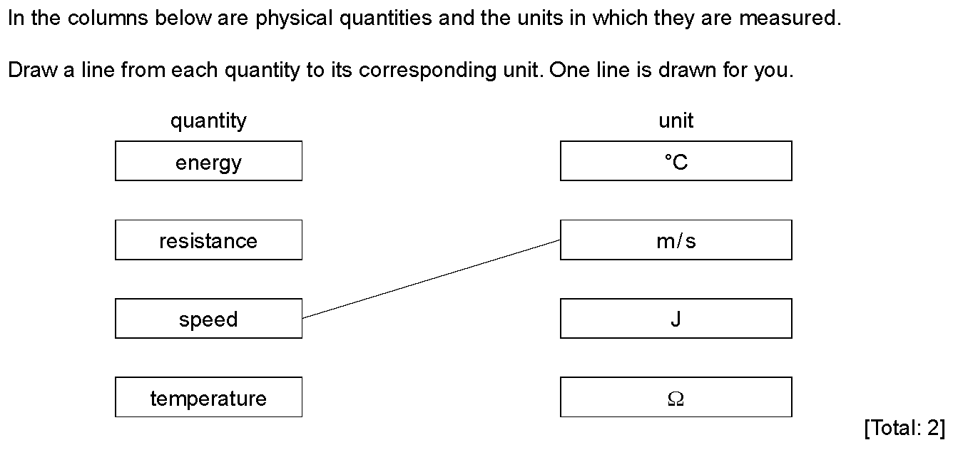 In the left-hand column below are four physical quantities that might be measured in the Physics laboratory. In the right-hand column are eight statem...