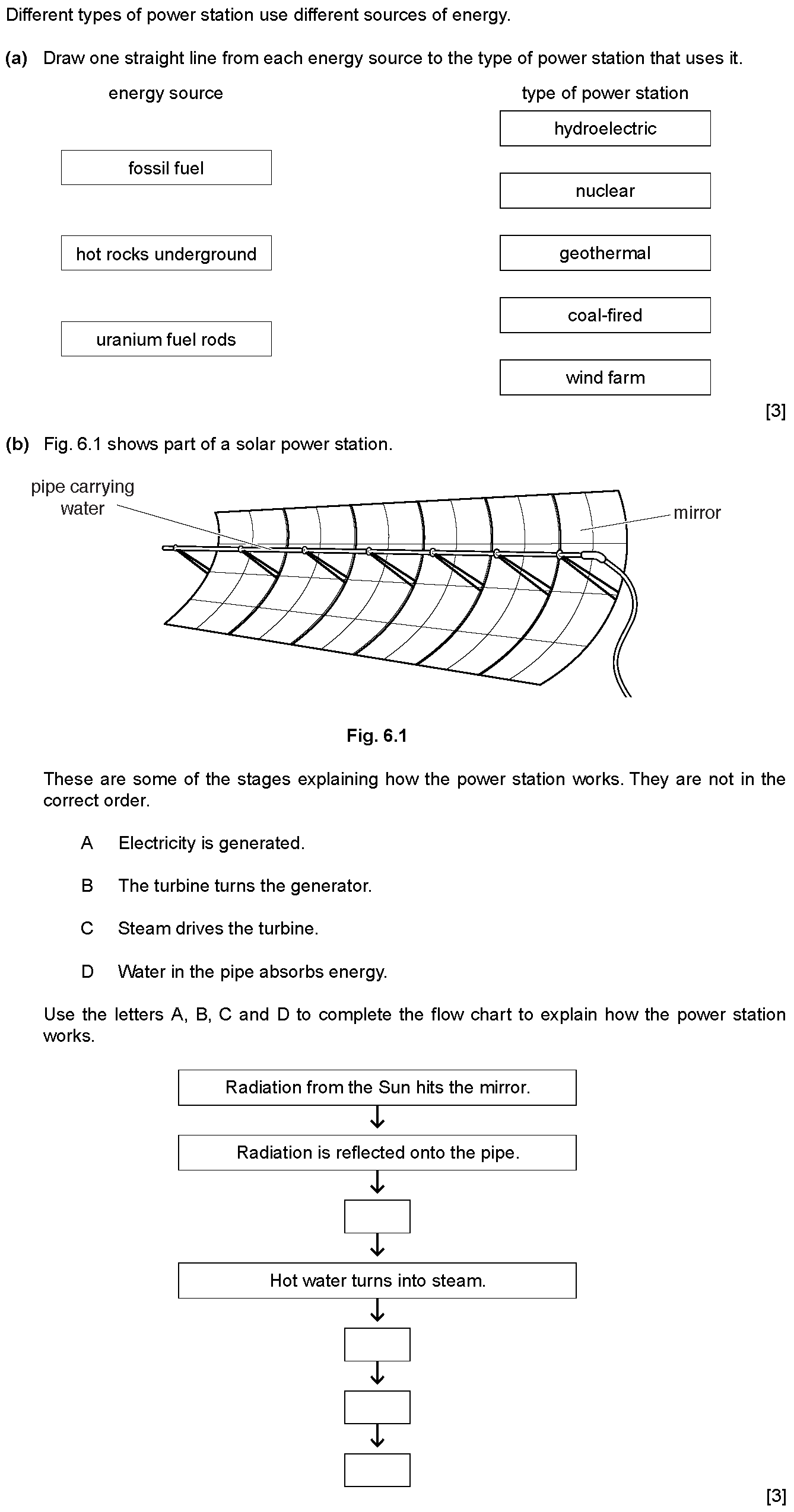 (a) Name three different energy resources used to obtain energy directly from water (not steam).1. ......................................................