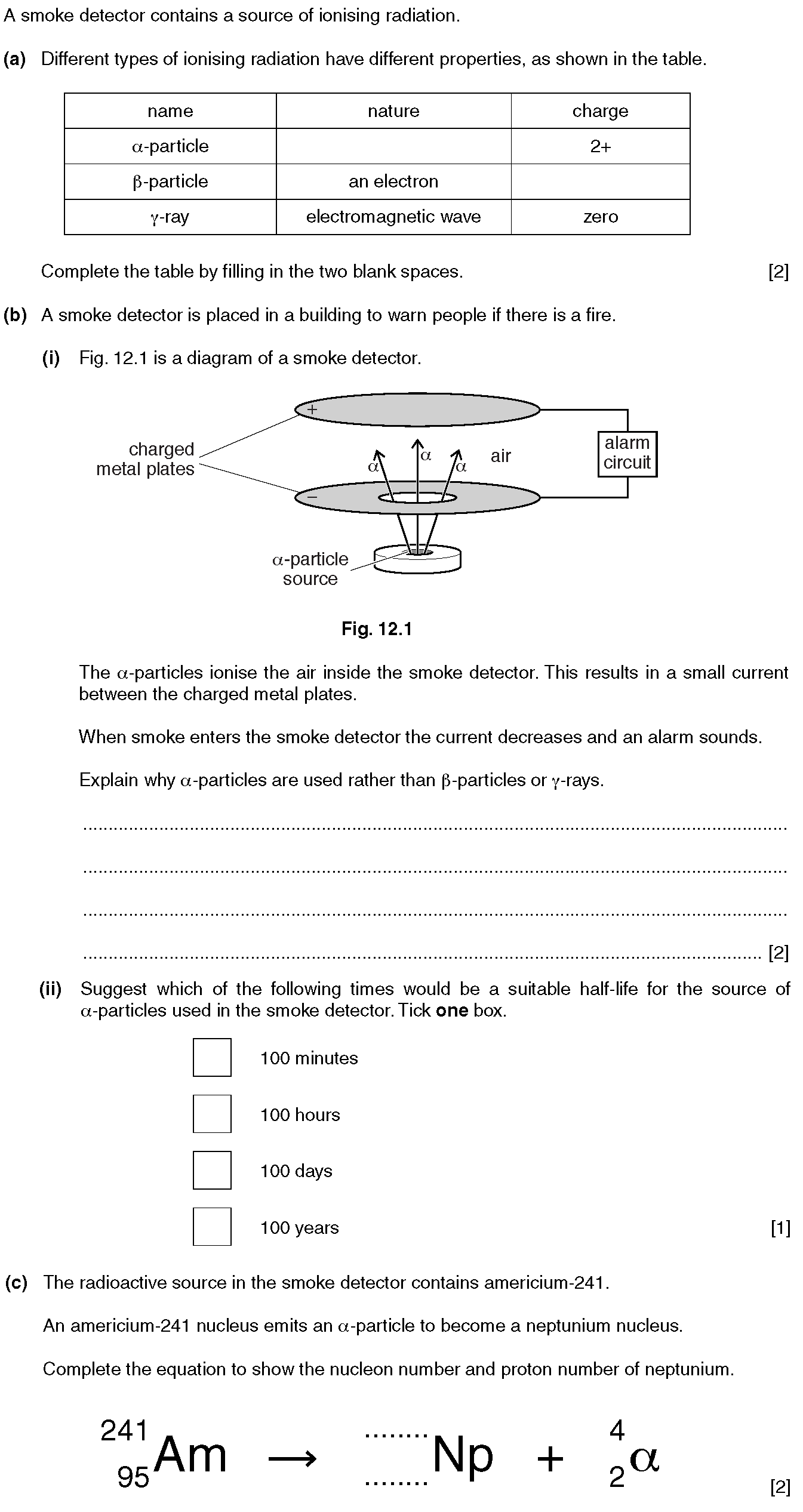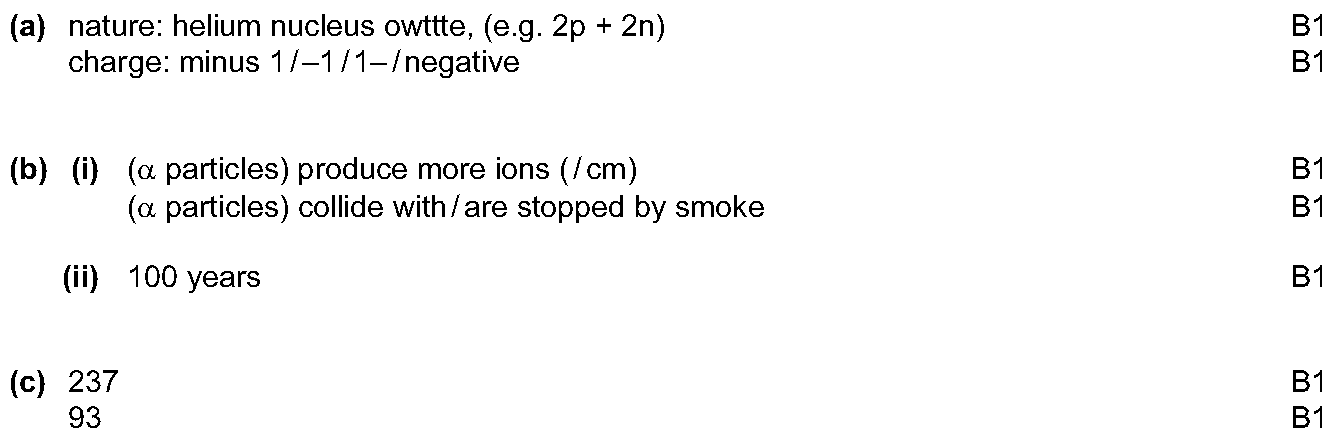 (a) The symbol for an $\alpha$-particle is either $^4_2\alpha$ or $^4_2\text{He}$.(i) What does the 4 indicate about an $\alpha$-particle?...............