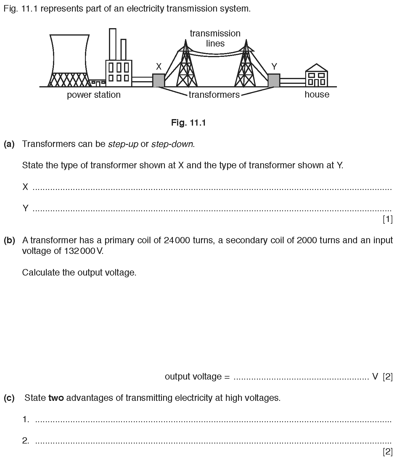 Fig. 10.1 is a diagram of a transformer.[Image_1: Fig. 10.1 diagram](a) (i) On Fig. 10.1, clearly label the core of the transformer. [1](ii) Name a su...