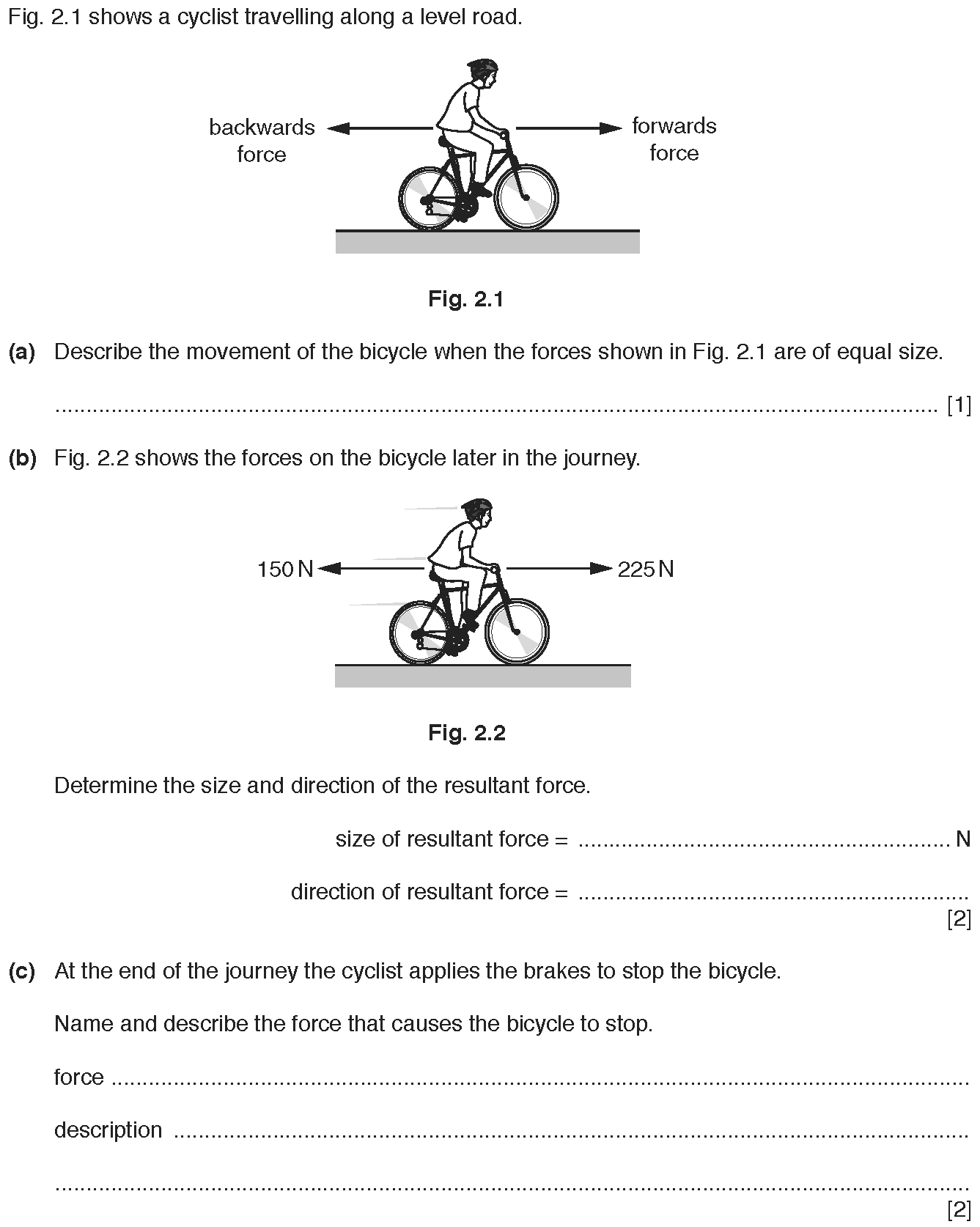 The car in Fig. 3.1 is on a level road.(a) Calculate the magnitude of the resultant force on the car.resultant force = ..................................