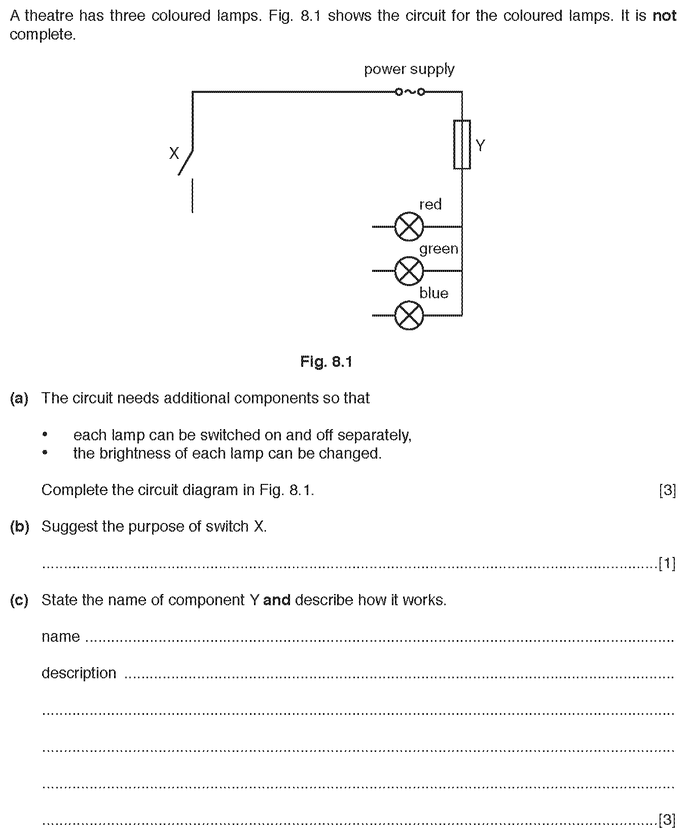Fig. 8.1 shows a cell.(a) What does the 1.5V indicate about the cell?.............................................................[2](b) Three cells i...