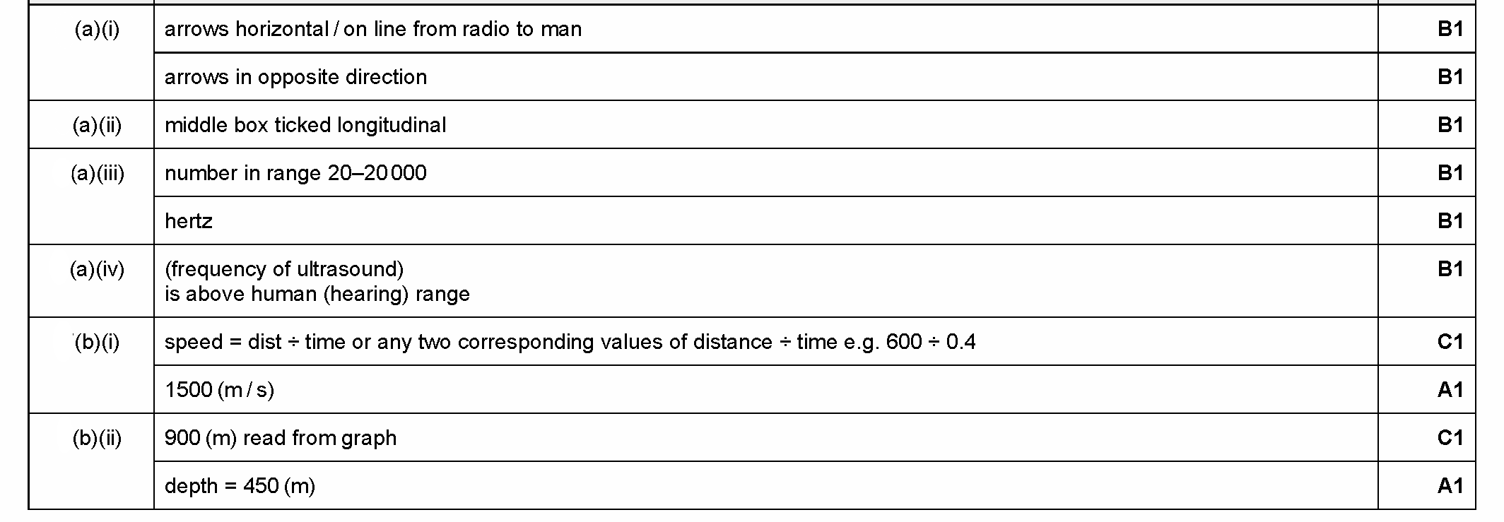 (a) The four words below can each be used to describe waves.Put a tick in each of the boxes alongside any words that can be applied to sound waves.lon...