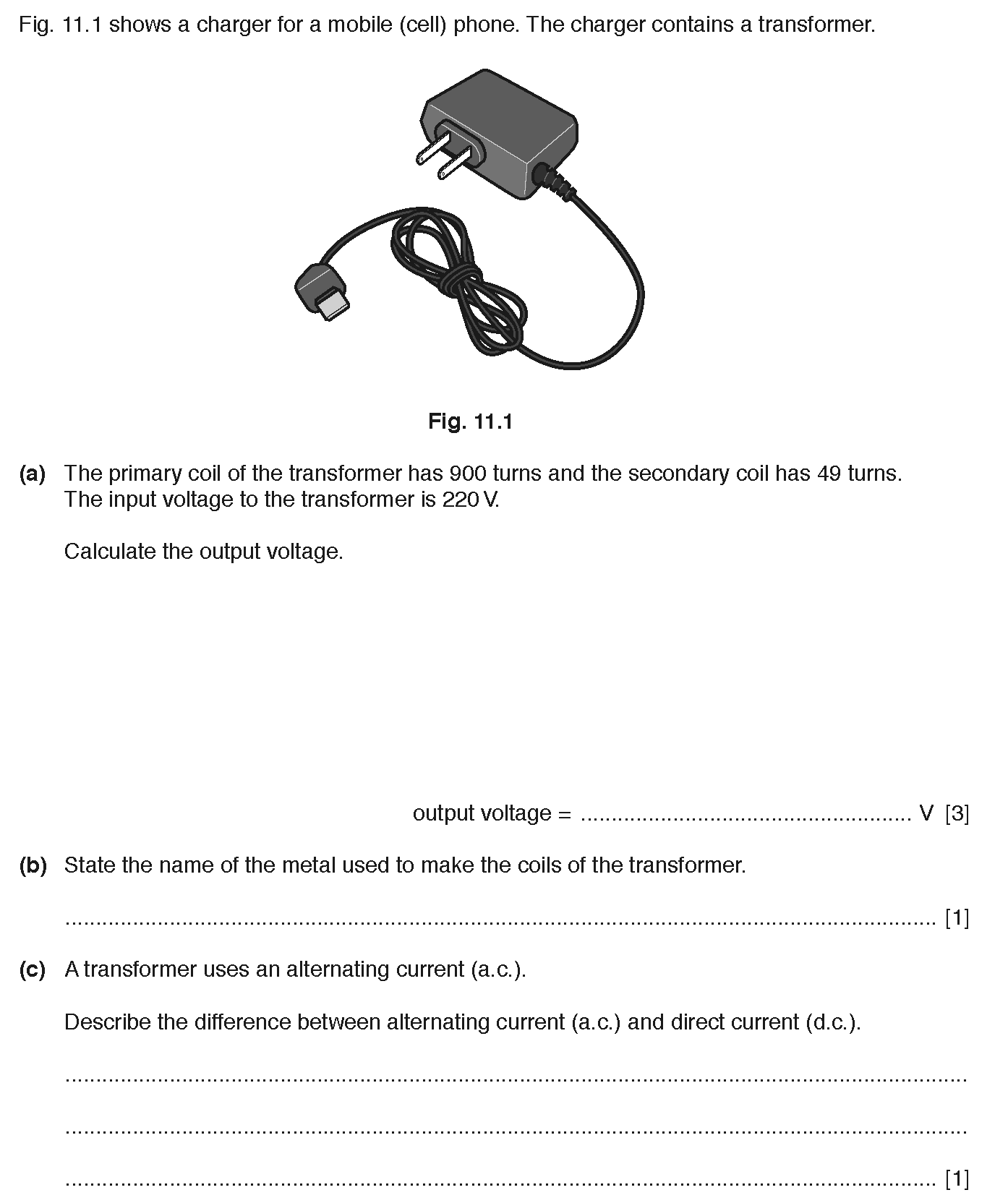 Q11: Cambridge IGCSE Physics - 0625 - Core Paper 3 2017 Winter Zone 2