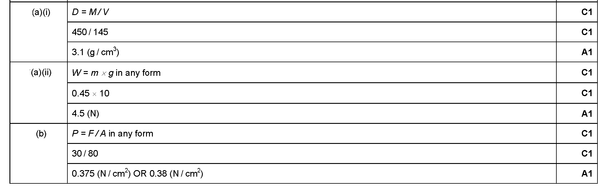 (a) State the equation linking the density of a substance with its mass and volume.......................................................................