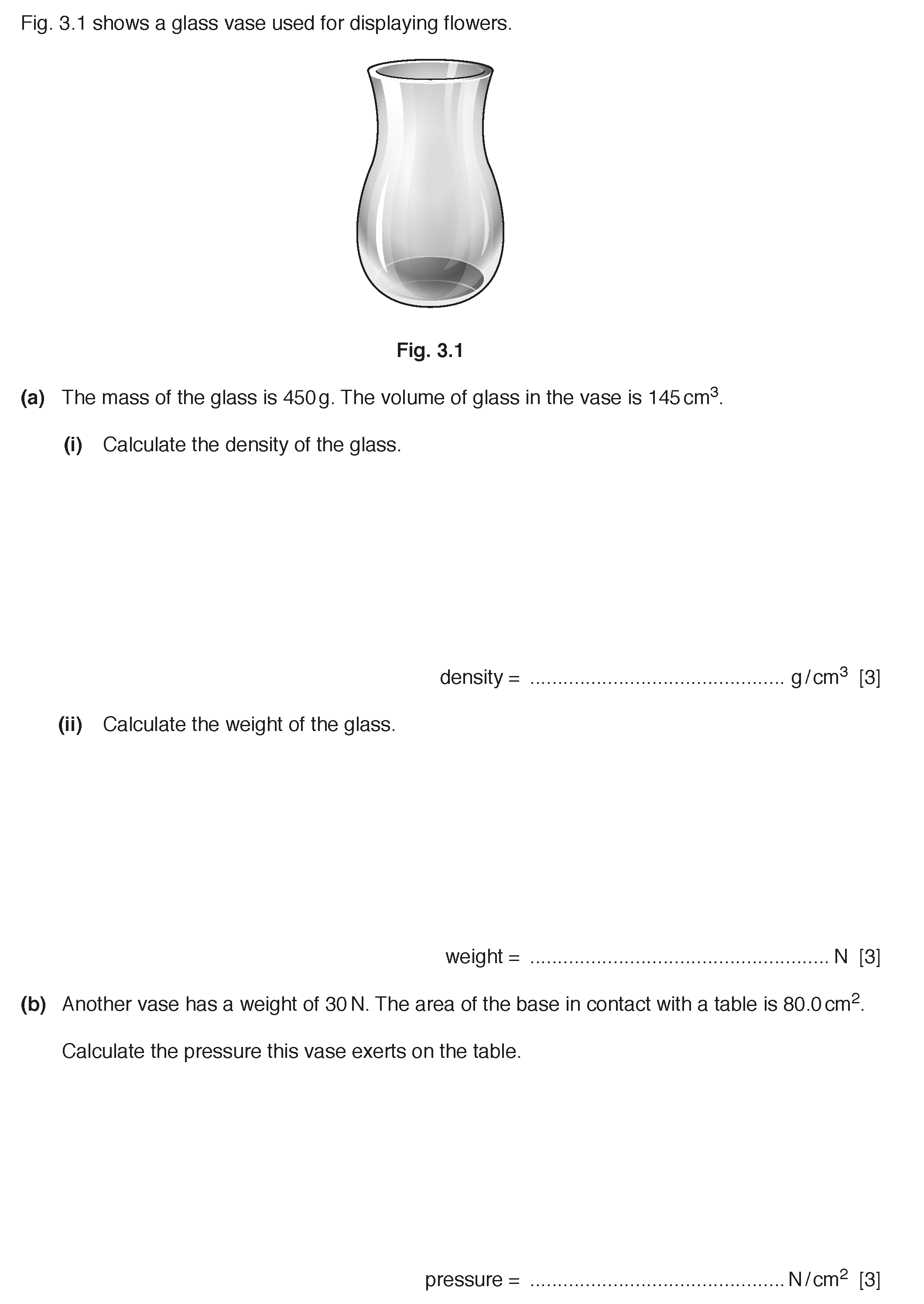 The volume of a stone is to be found using the equipment illustrated in Fig. 1.1. [Image_1: Fig. 1.1 showing a stone, measuring cylinder, and water] T...