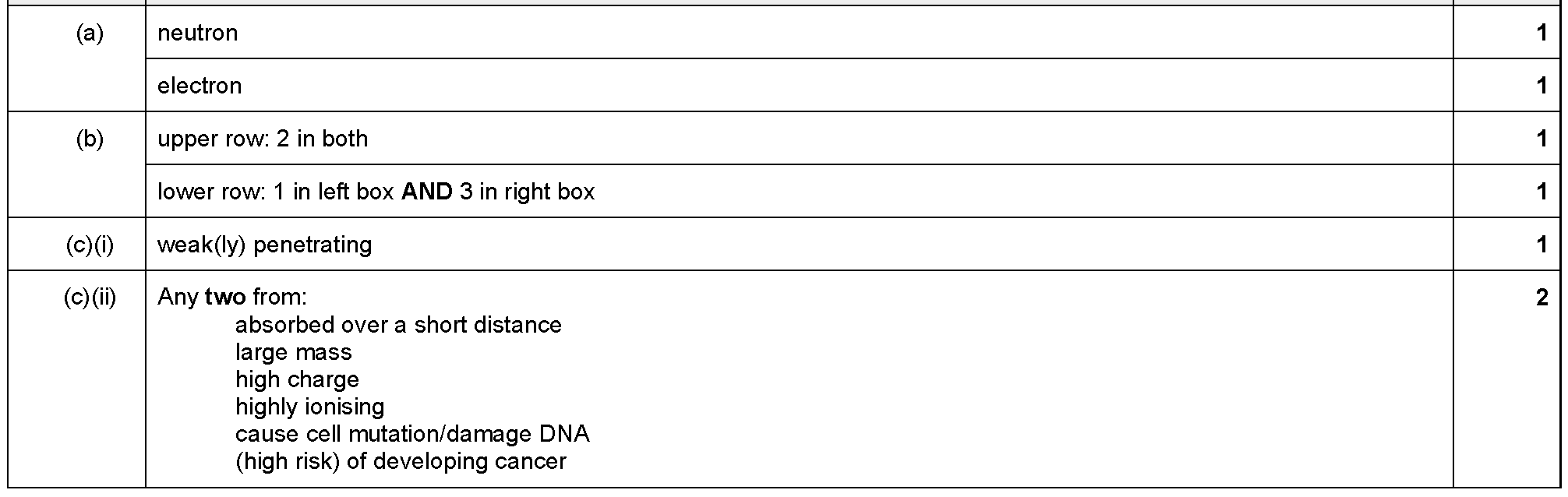 The table below gives details about some radioactive substances.[Table_1](a) Which of these substances has the greatest number of particles in the nuc...