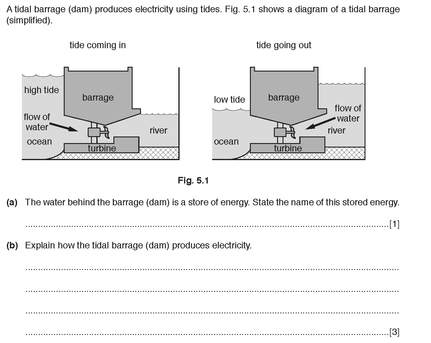 (a) Name three different energy resources used to obtain energy directly from water (not steam).1. ......................................................