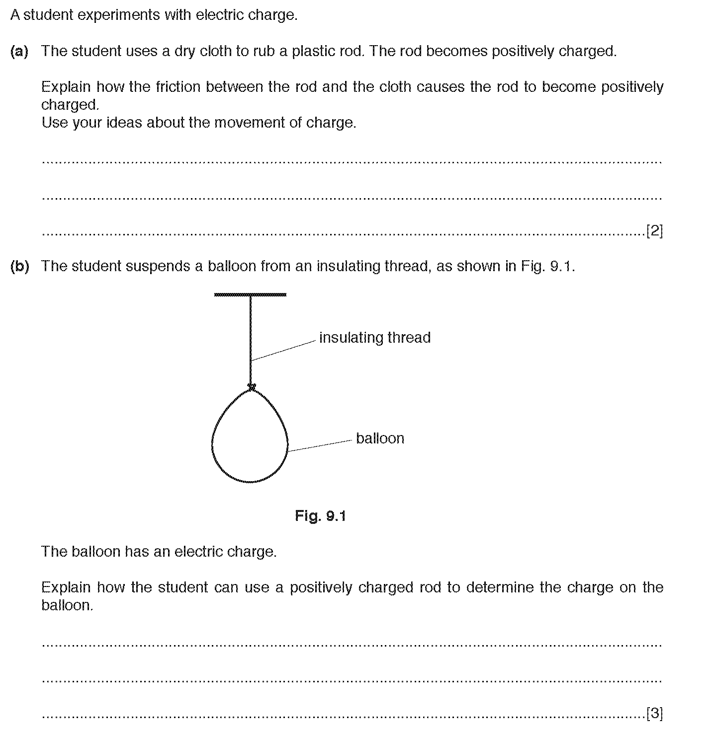 (a) Two light, identical spheres, A and B, are suspended alongside each other on thin nylon threads, as shown in Fig. 7.1.[Image_1: Diagram of two sph...