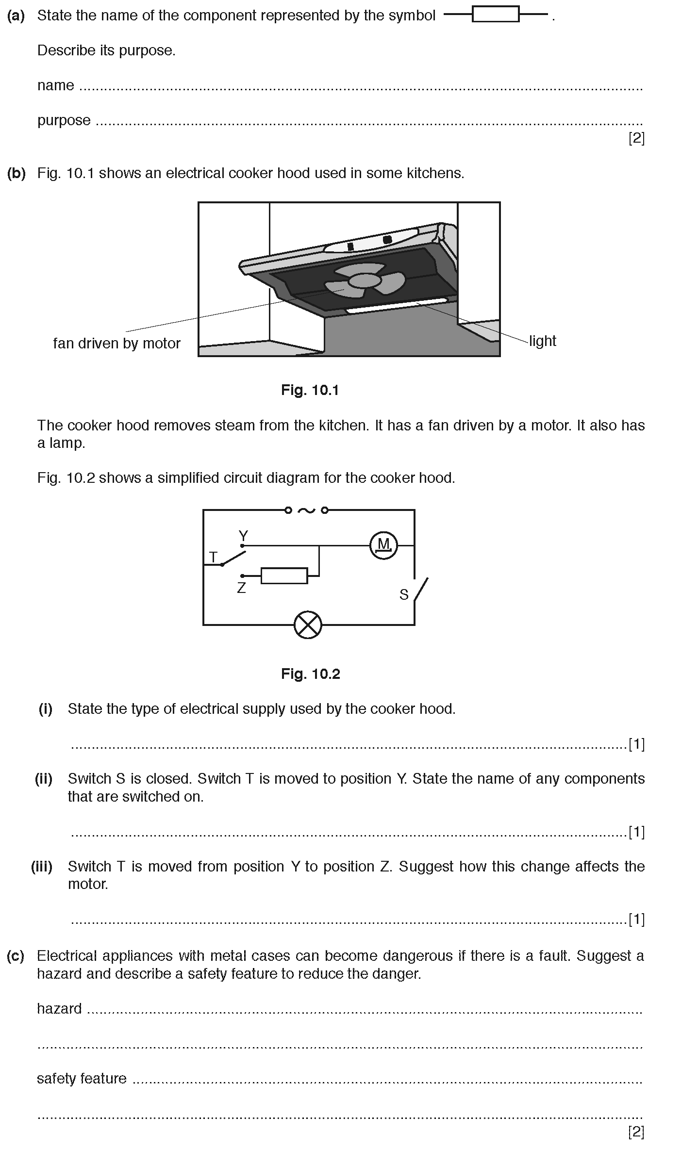Fig. 10.1 shows four different types of switch.(a) In the space below, draw the circuit symbol for a switch.[1](b) (i) Which one of the switches is de...