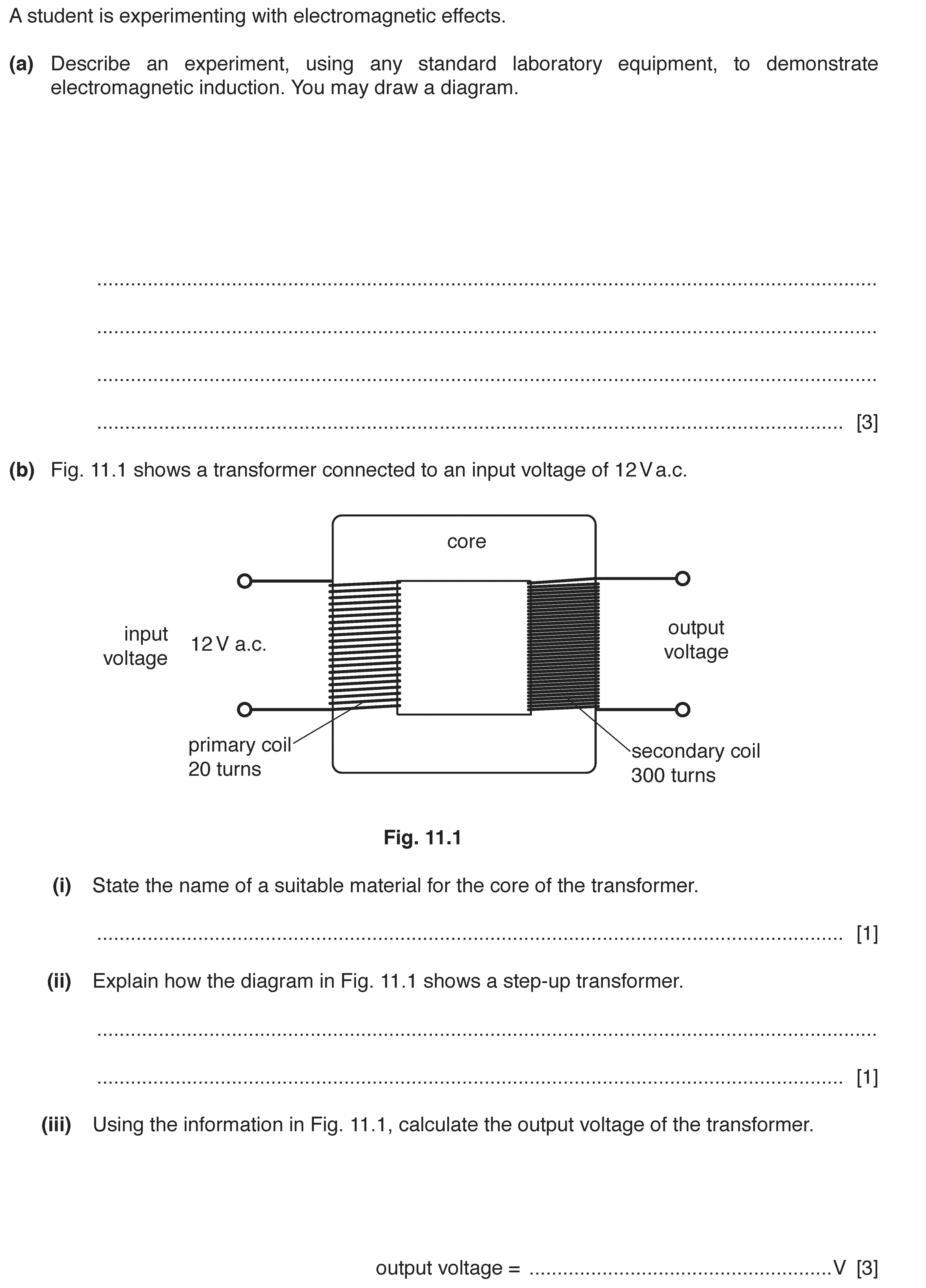 Q11: Cambridge IGCSE Physics - 0625 - Core Paper 3 2019 Winter Zone 1