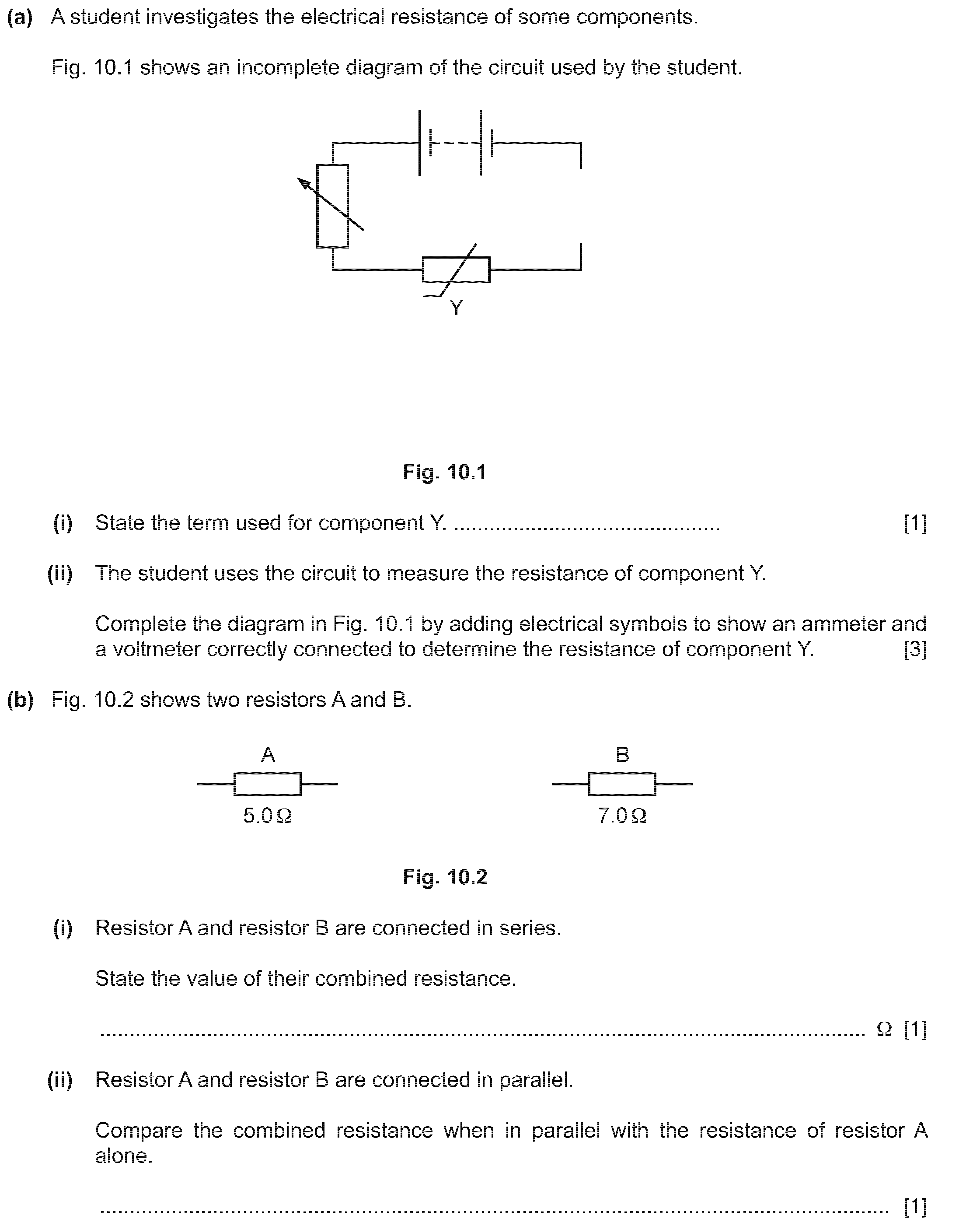 Fig. 8.1 shows two resistors forming part of a circuit.(a) (i) Complete the following sentence about the two resistors connected between A and D.The t...