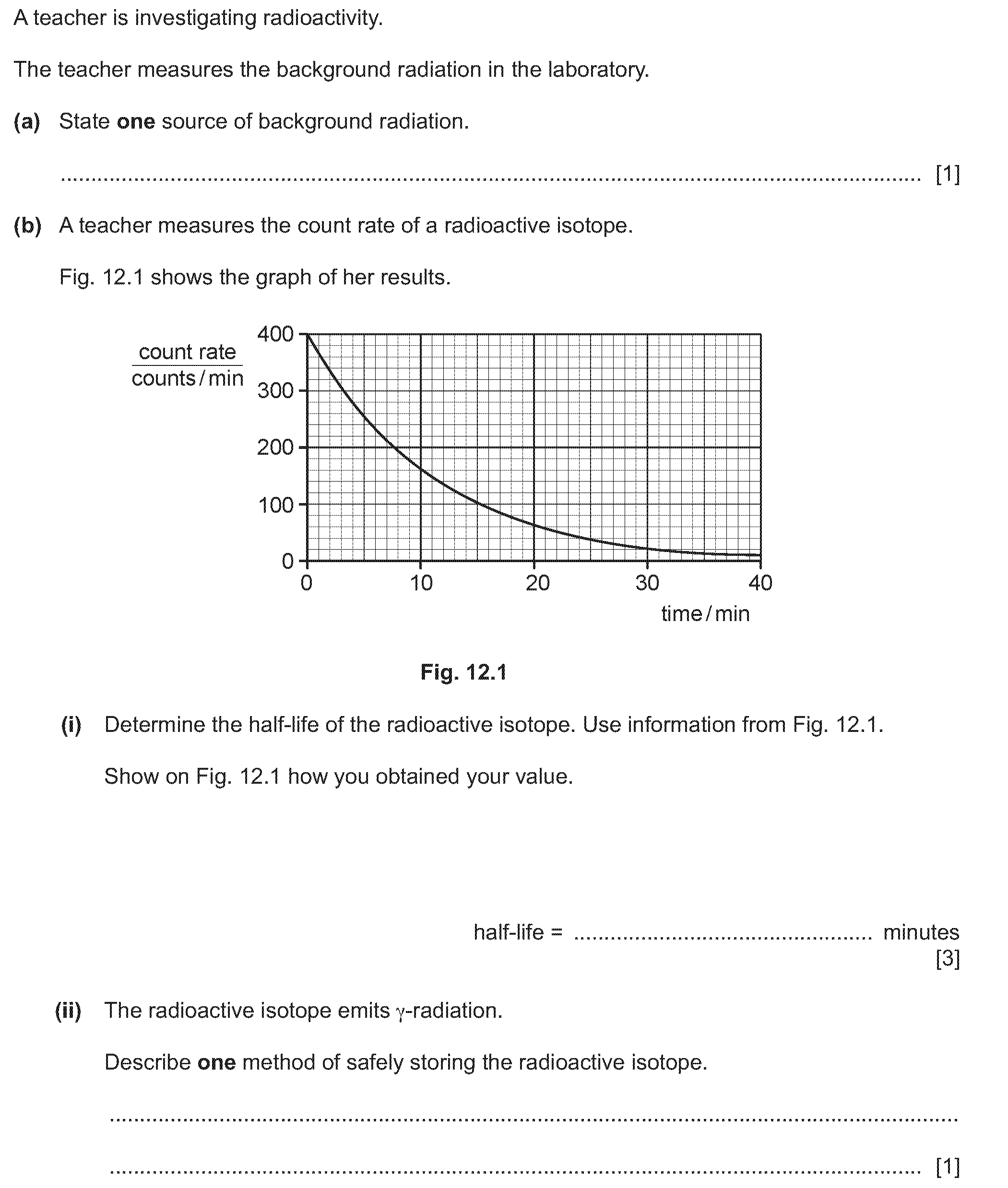 (a) Complete the following definition of radioactive half-life.The half-life of a radioactive substance is the time taken for ...........................
